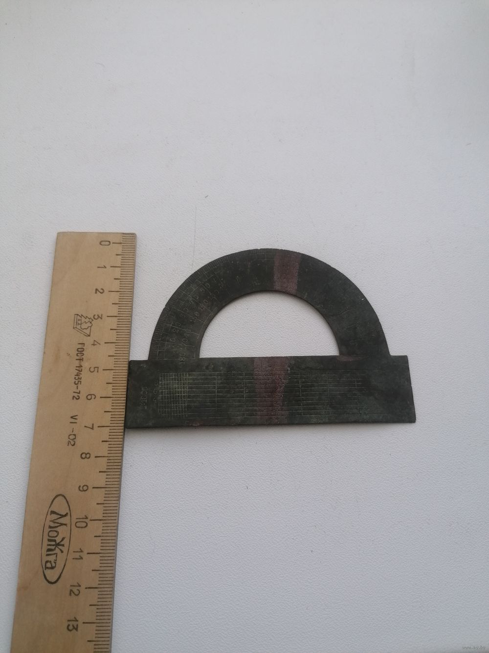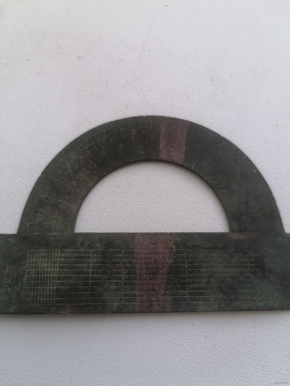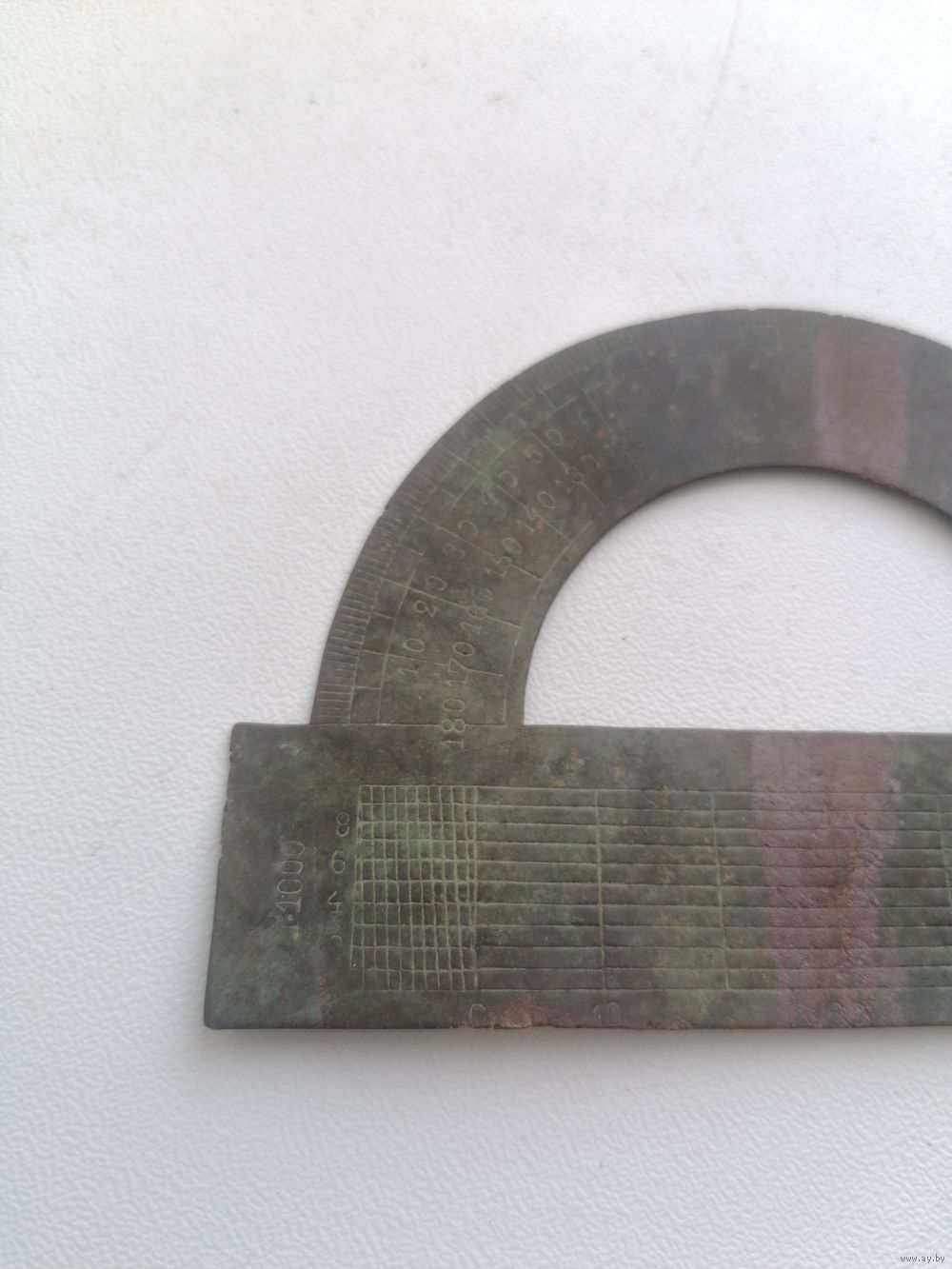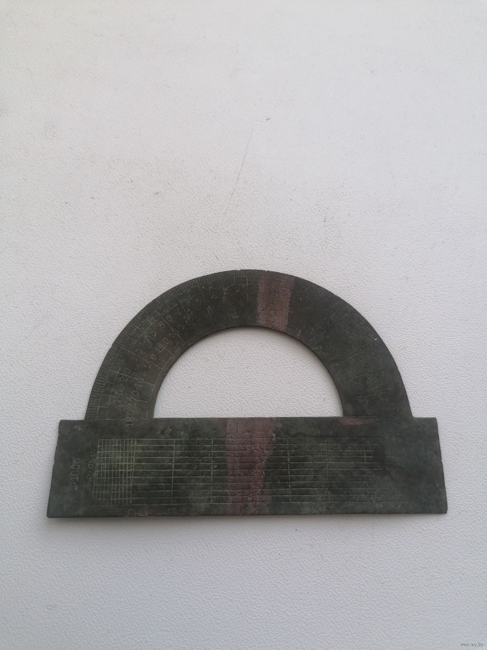 Старинный транспортир, латунь, патина