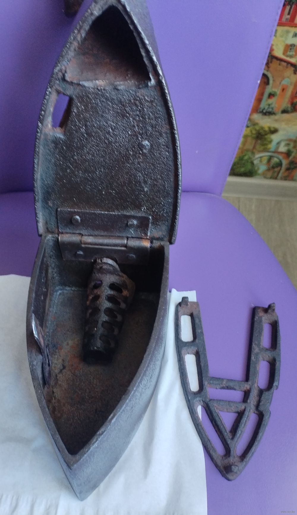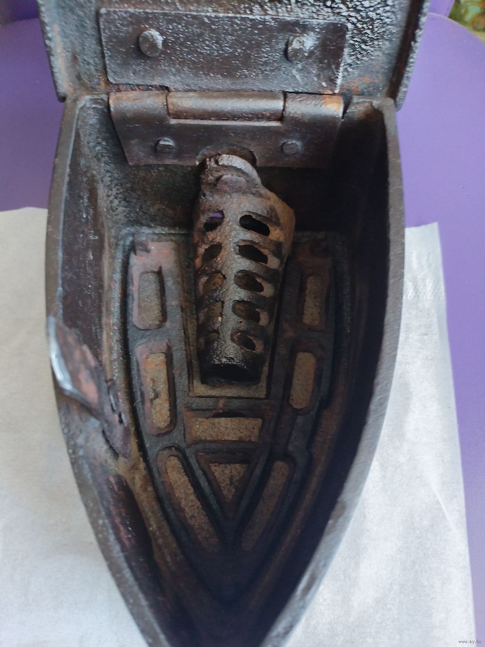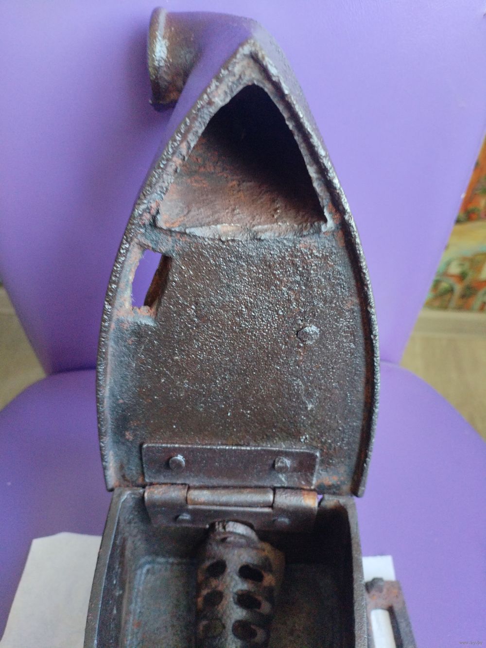 Старинный чугунный угольный утюг с трубой "Slowianin Konskie", № 7, Польша.
