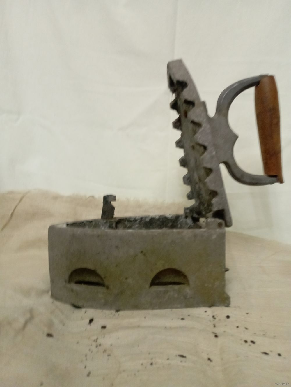 Старинный алюминевый утюг. Родная ручка.