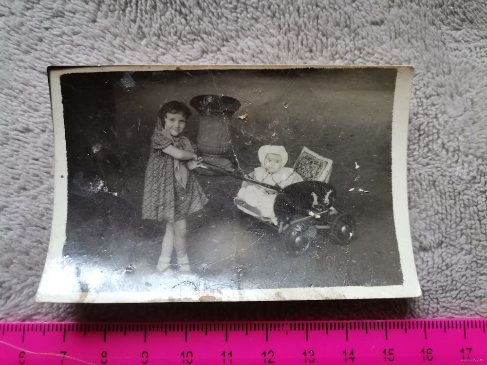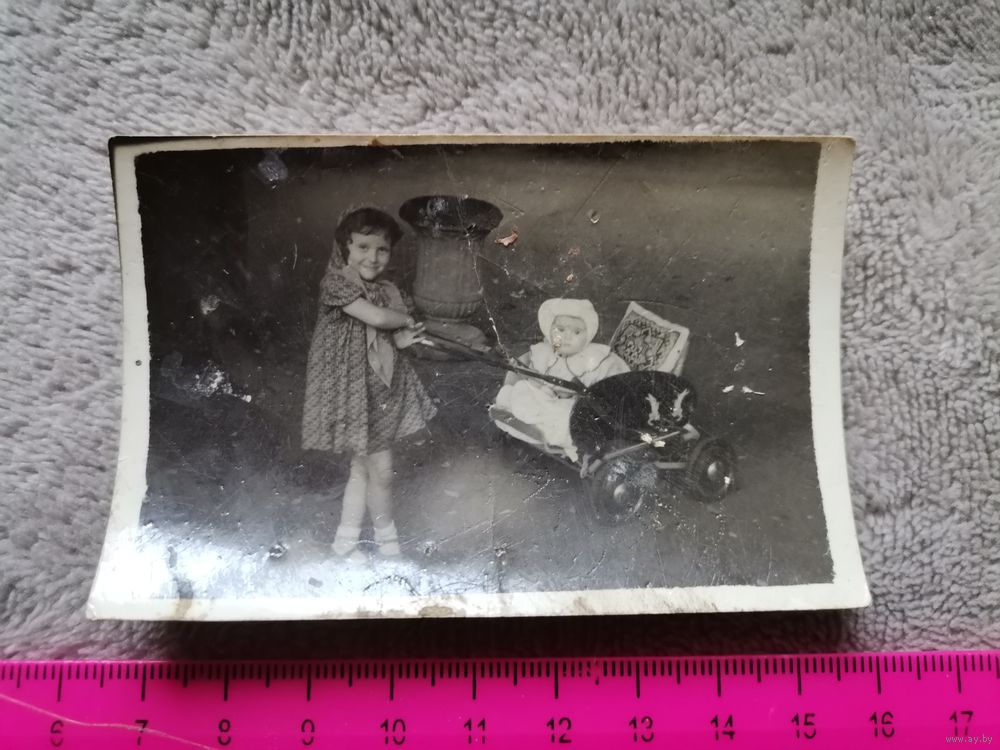 Старое фото. Девочка с коляской. Состояние на фото. Отправка только Европочтой