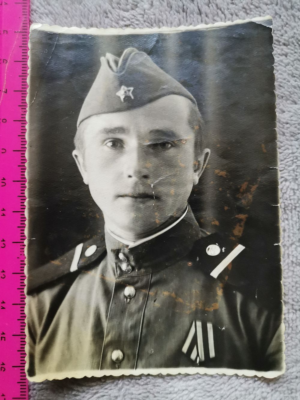Старое фото. Солдат с наградой. 1949г. Состояние на фото. Отправка только Европочтой