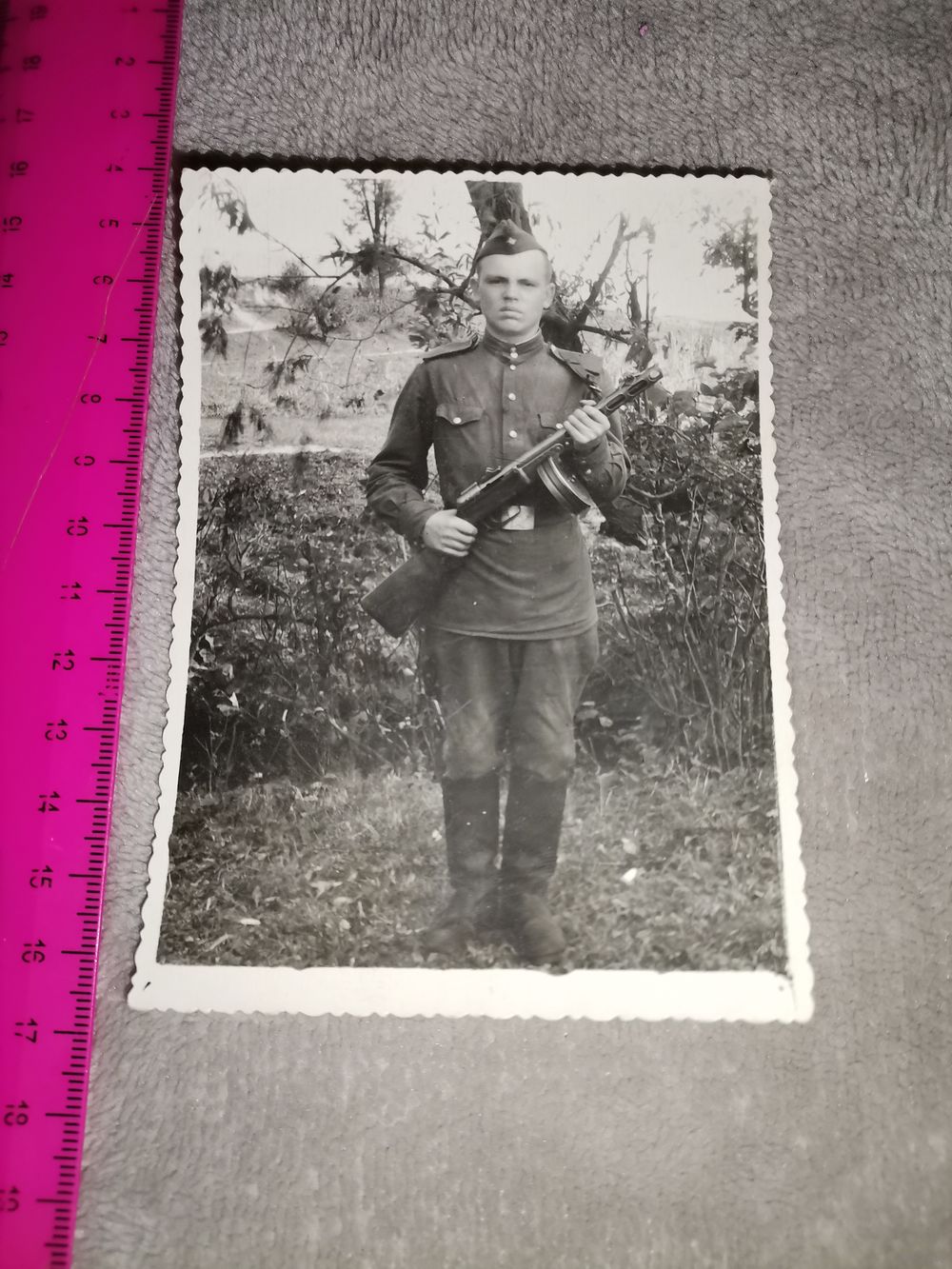 Старое фото. Солдат с ППШ. 1953г. Состояние на фото. Отправка только Европочтой