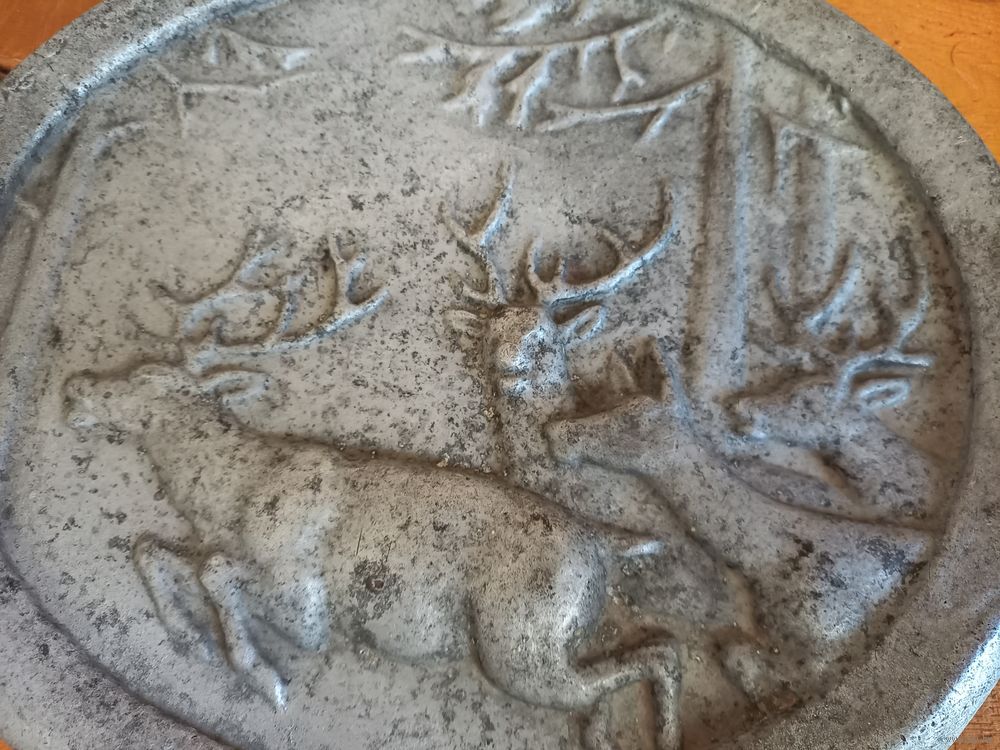 Старое панно, барельеф, семейство оленей, похоже на олово, мягковатый и тяжелый металл, длина - 30см, высота -27 см.