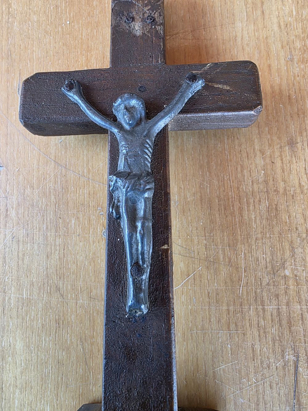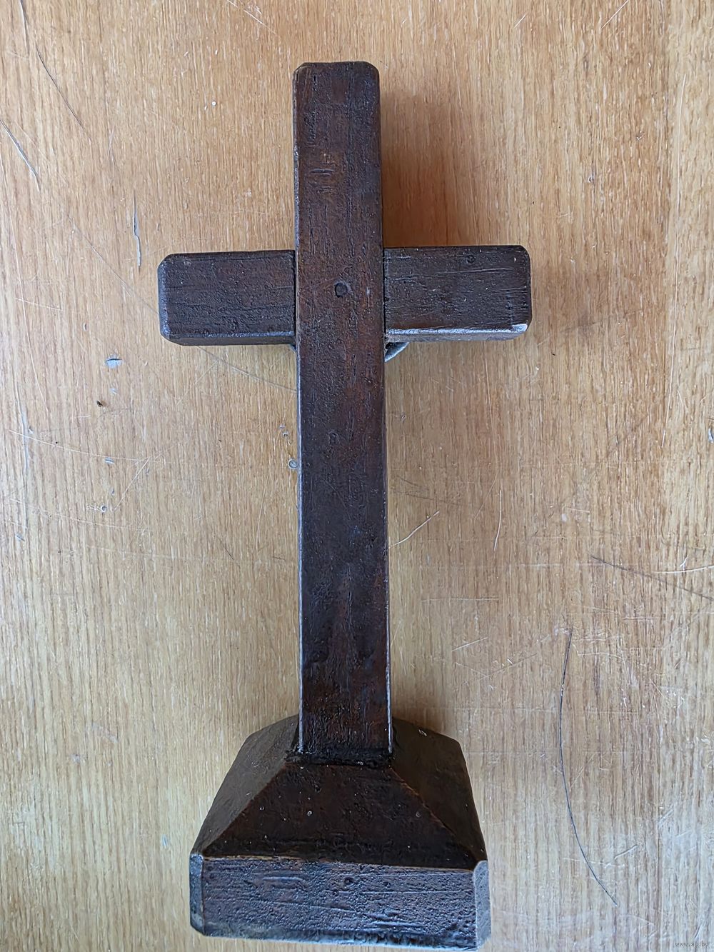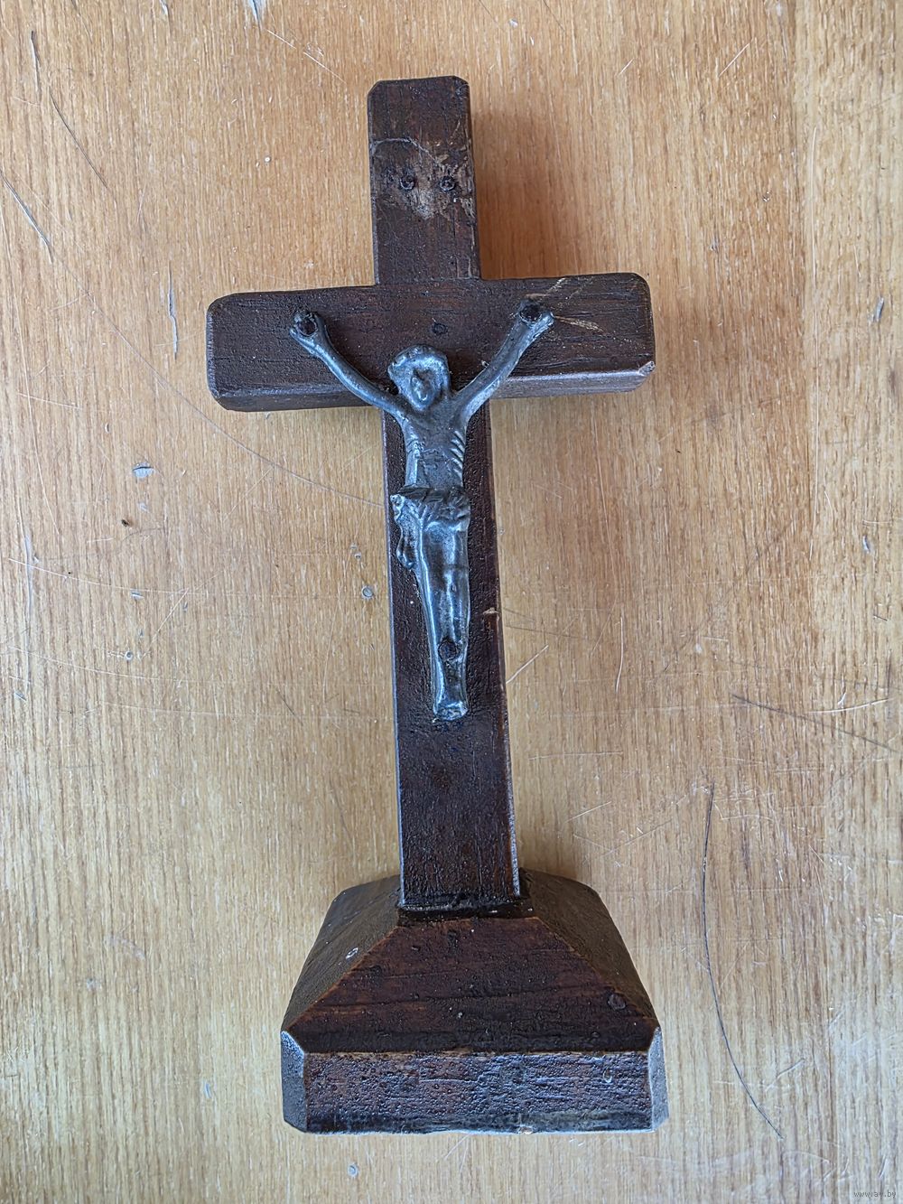 Распятие из дерева. Иисус-свинец. Высота 22,5 см, ширина 10,5 см. Подставка 7,3 см.