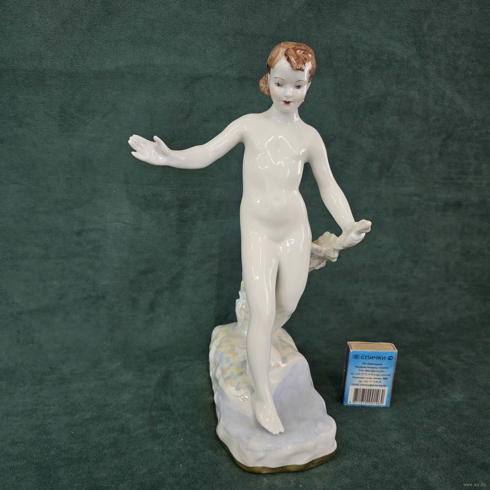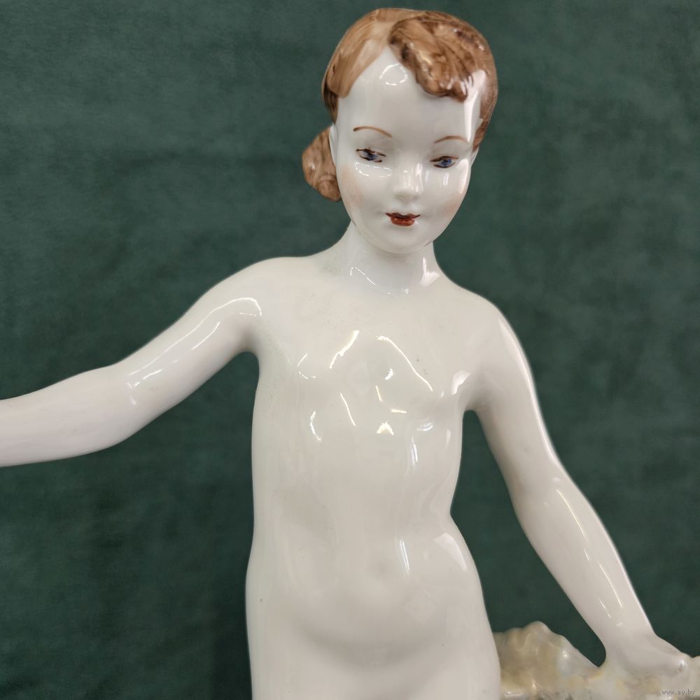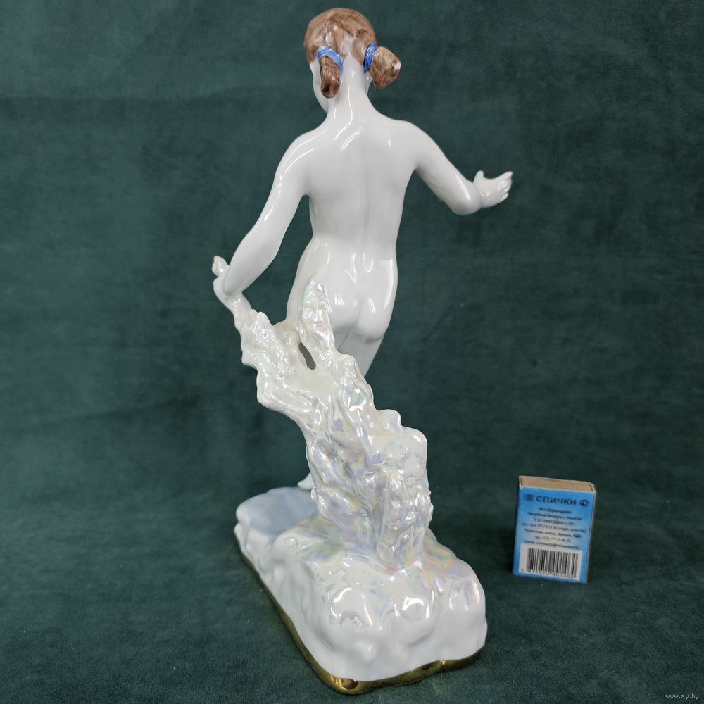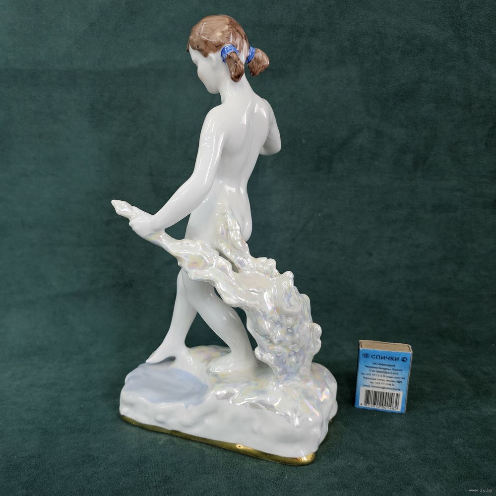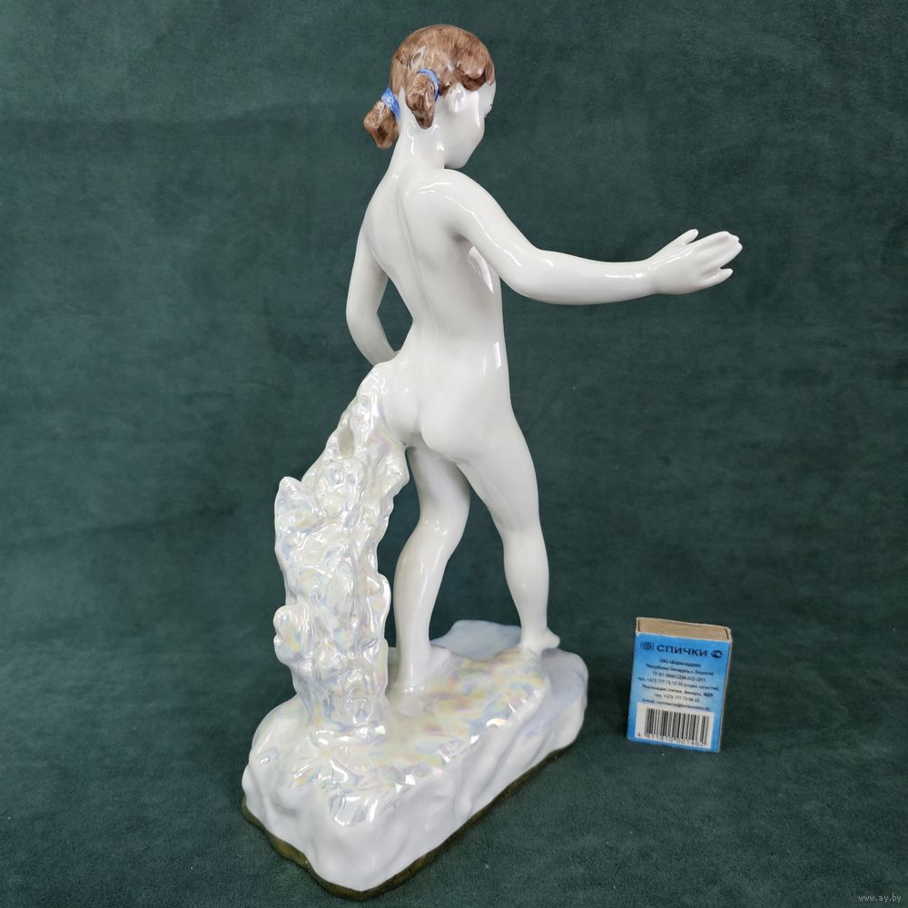 Старт с 1 Рубля !!! СССР Фарфоровая статуэтка Дулево. Голая Ногая Девушка Девочка У ручья !!!