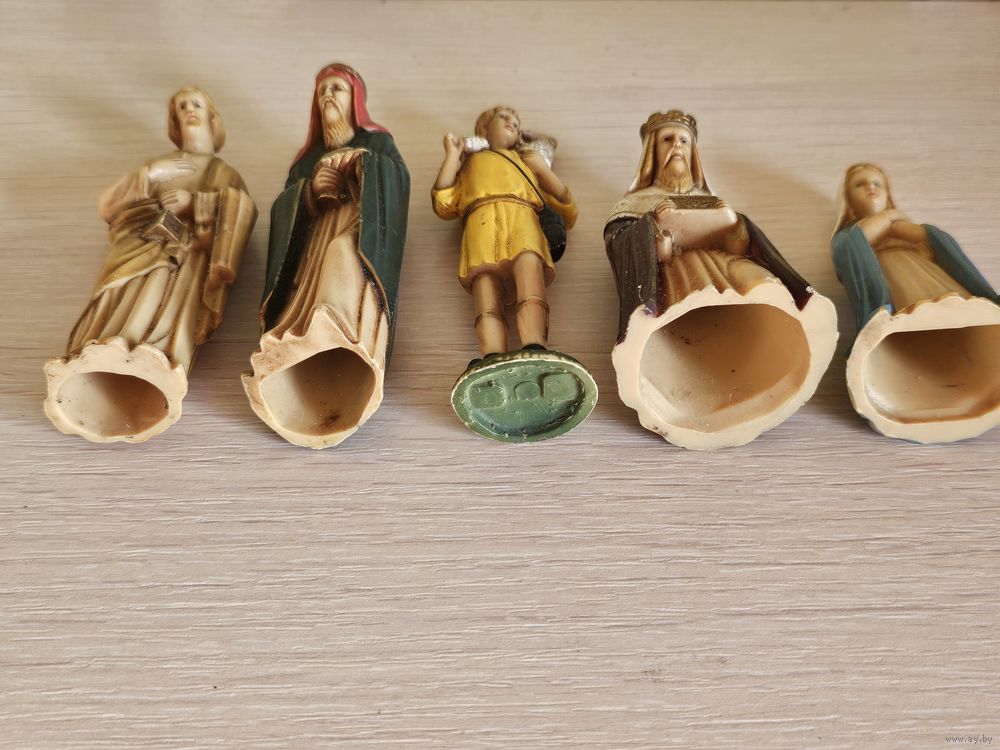 Высота 10 см и 7,5 см. Типа колкий пластик. Клейм нет.