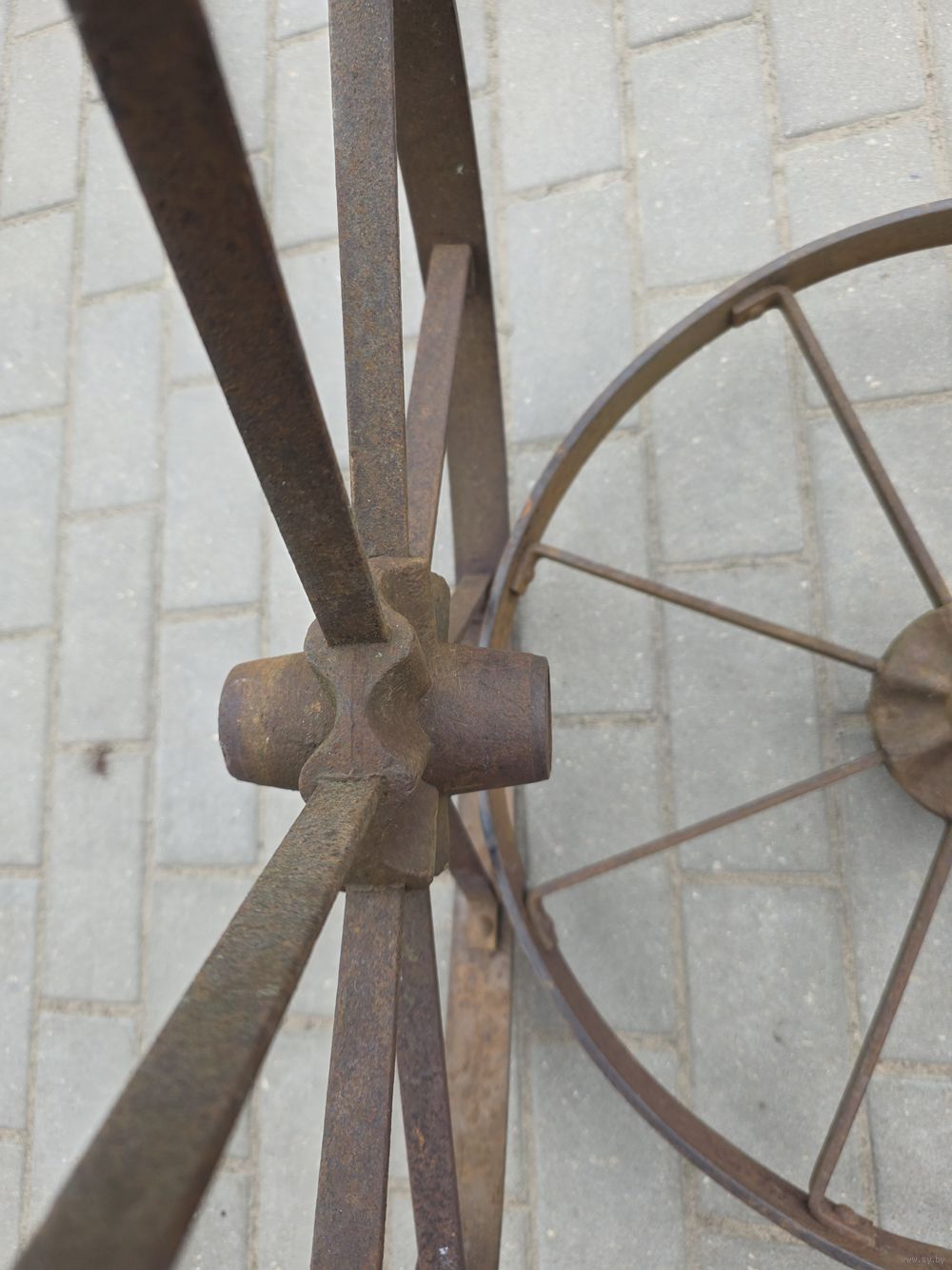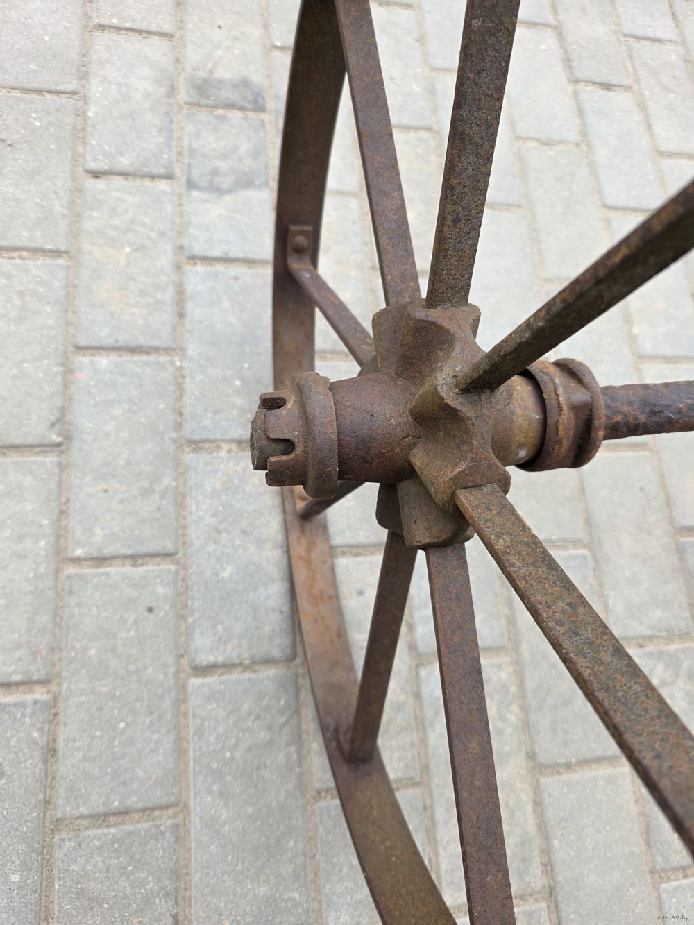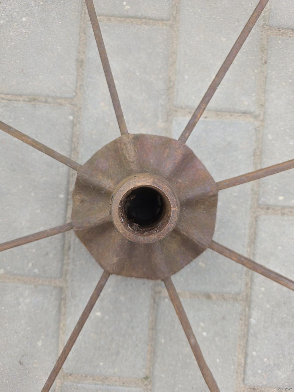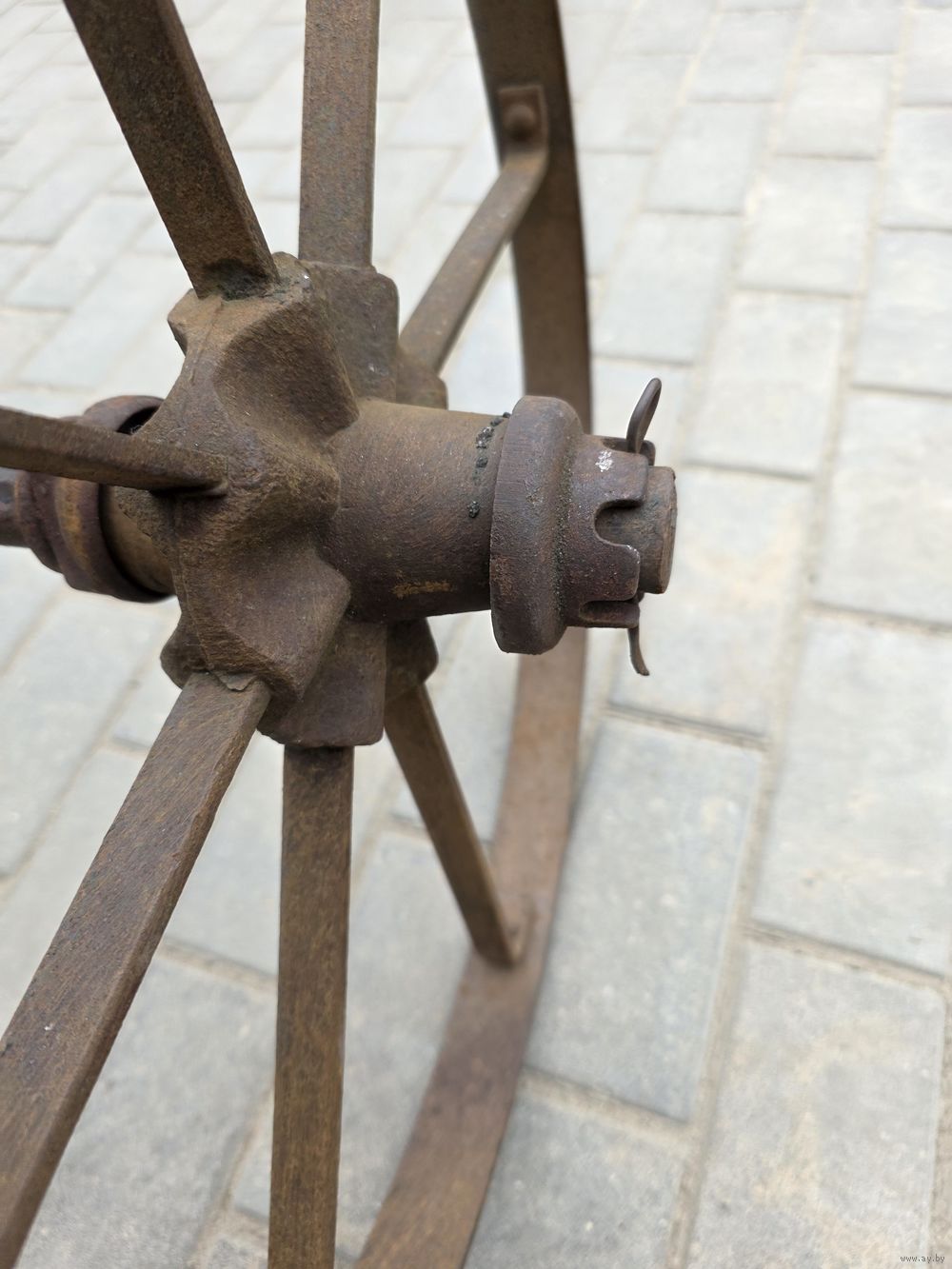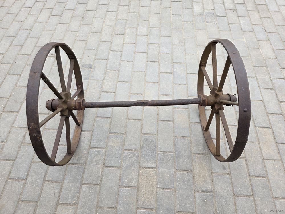Диаметр 58,5 см, ширина обода 4 см, с осью 94 см длина. Посадка под ось 3,6 см.