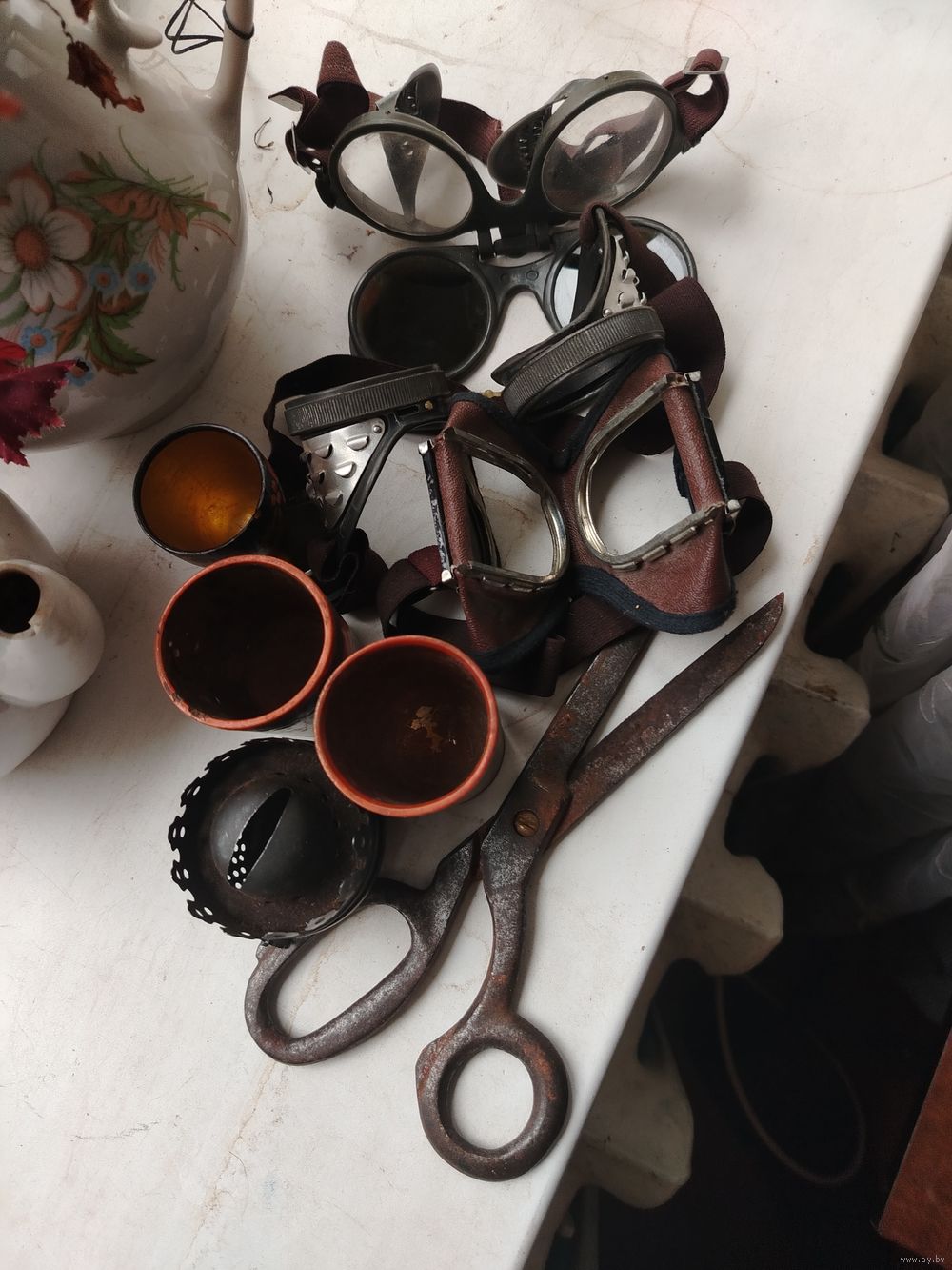 Старые прикольные Очки разные, 2 стекла., ножницы, три рюмки и новая горелка от лампы