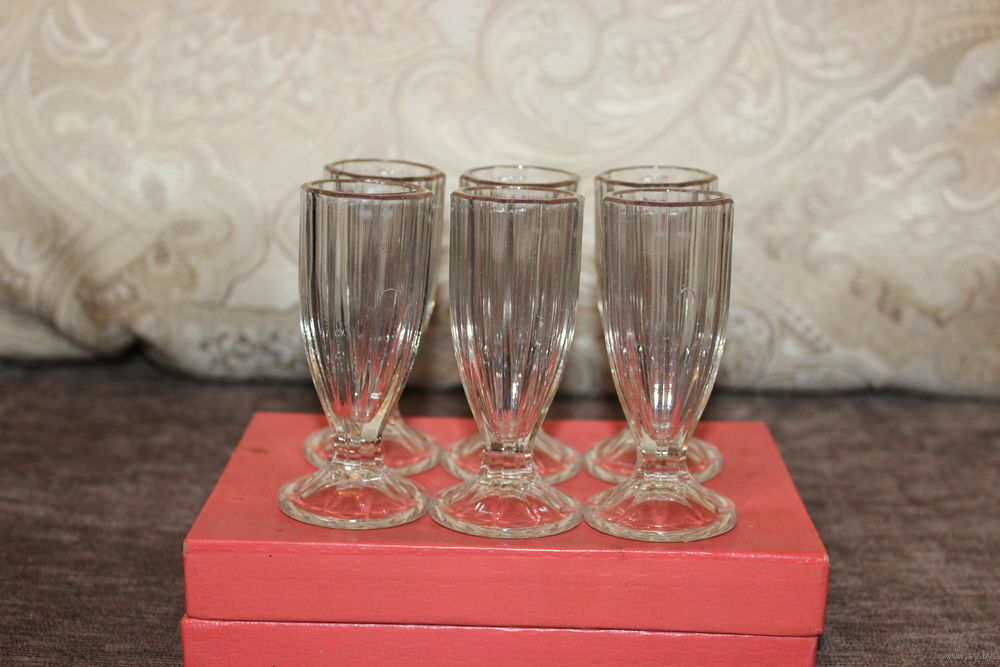 | На некоторых рюмках мелкие скольчики на гранях, одна рюмка имеет небольшую трещинку. | |