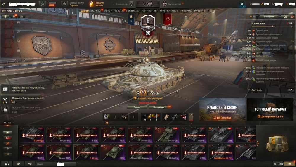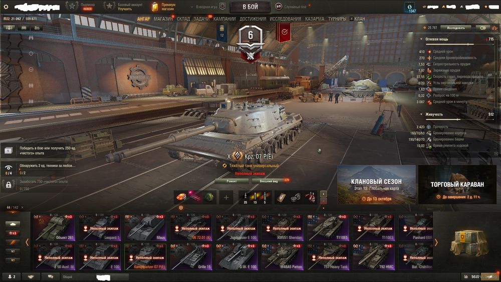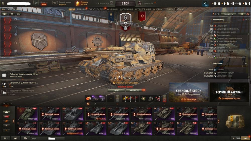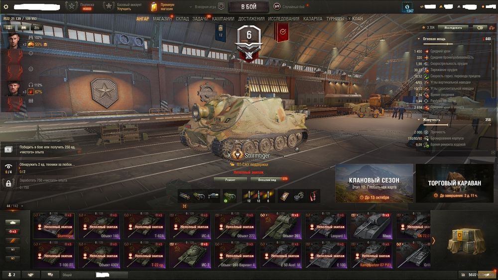 В ангаре на данный момент 43 танка 10 уровня. Из редкого есть: номерной Sturmtiger, Т-22 ср., VK 72.01 (k), Kampfpanzer 07 P(E).