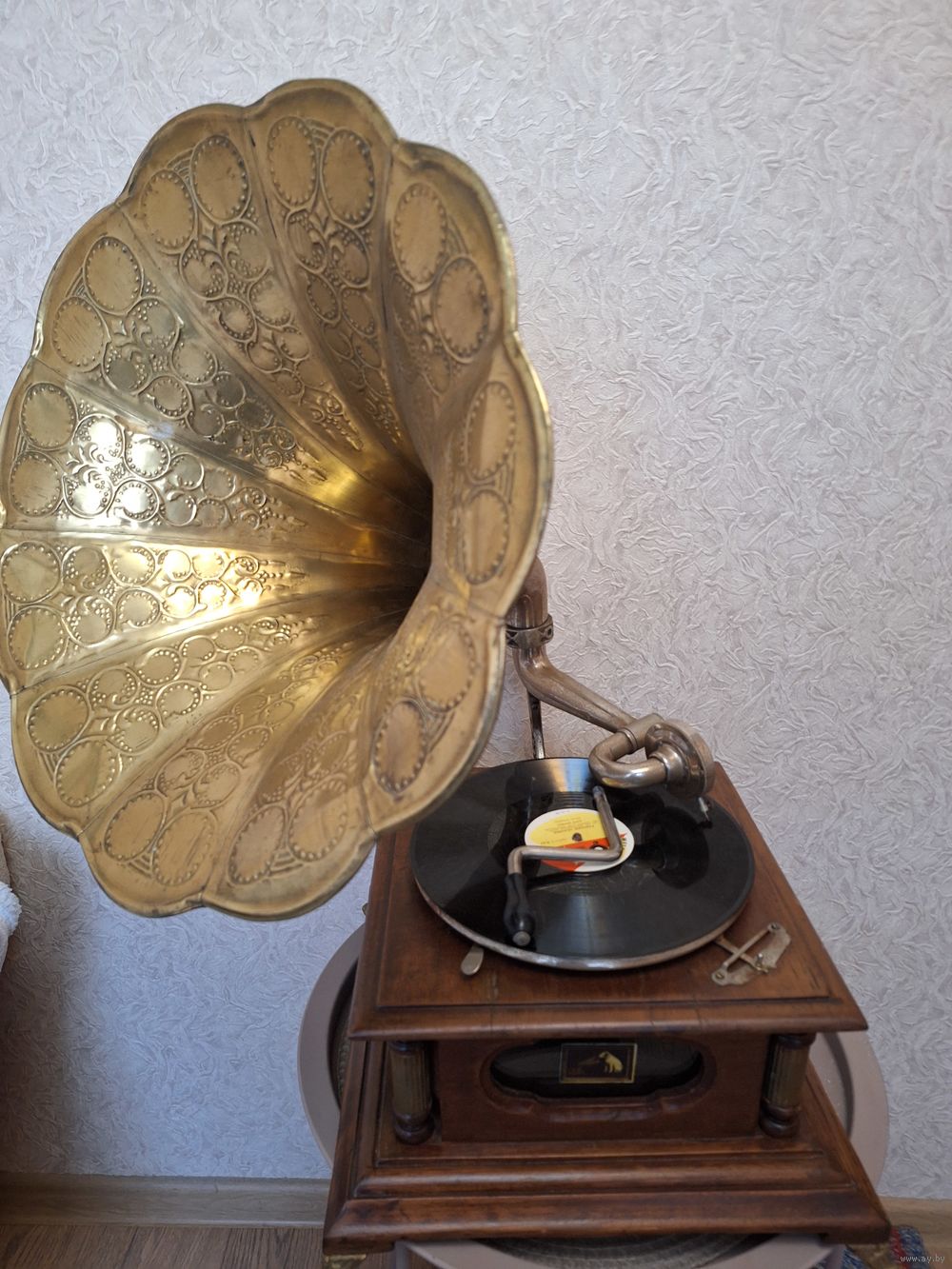 Граммофон с трубой в рабочем состоянии. Красивая труба. Звук чистый