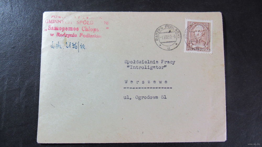 Старый конверт прошедший почту Польша 1952г. Колонтай