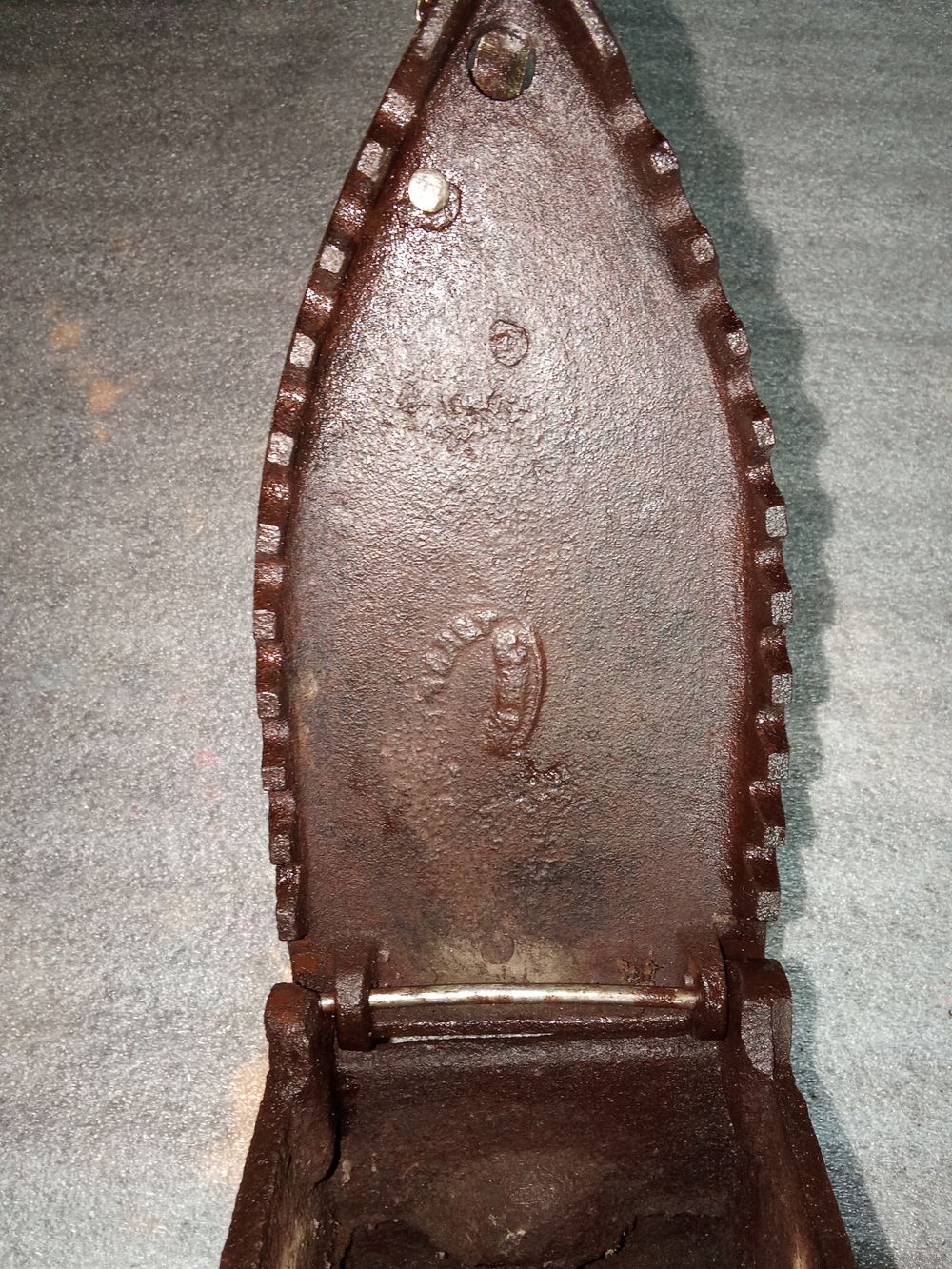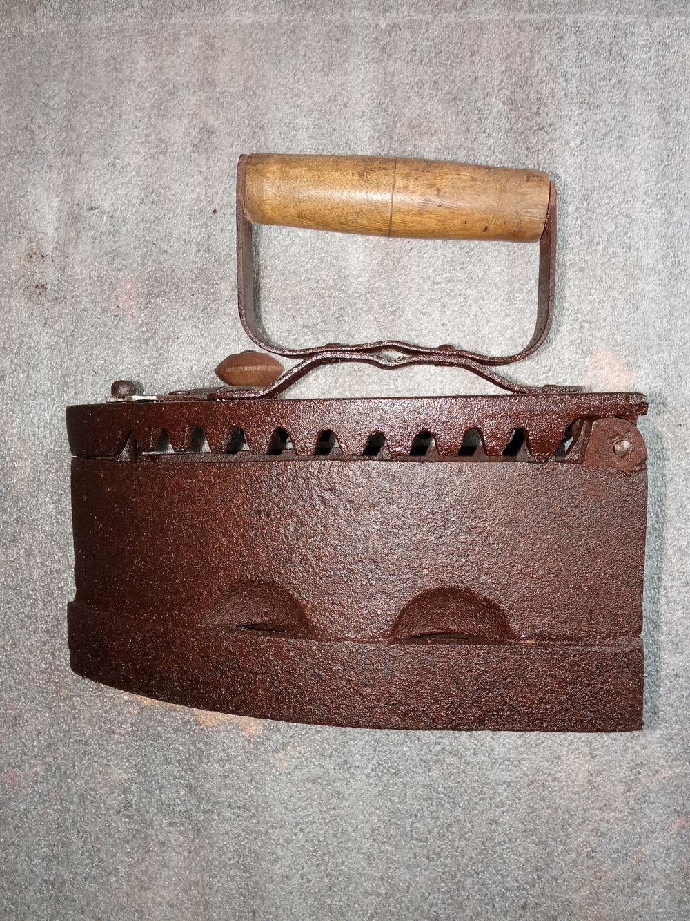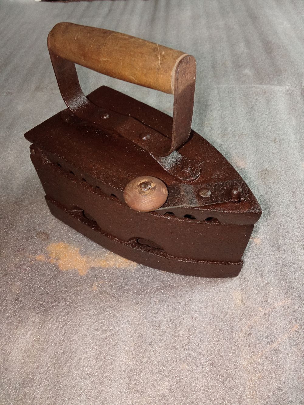 Старый угольный утюг. Не битый. Косметическое вмешательство местами. Состояние хорошее.