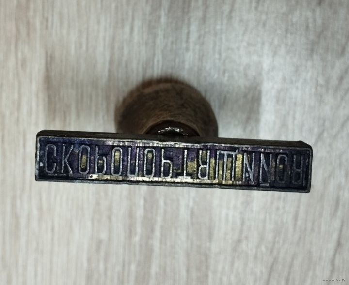 Штамп разборный. Ручка деревянная. Текст: " СКОРОПОРТЯЩИЙСЯ". Использовался на ж/д.