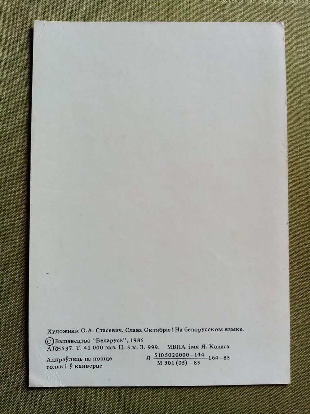 Стасевіч Слава Кастрычніку! 1985 Слава Октябрю! 1917 Белорусская открытка Беларуская паштоўка чистая