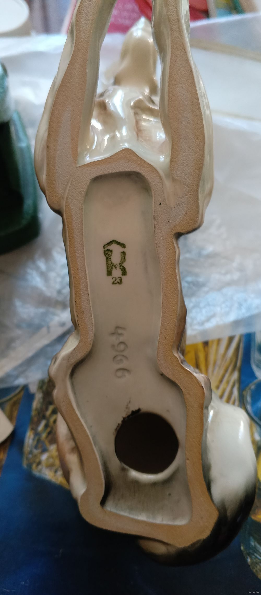 Статуэтка "Овчарка" .Глазурованный фарфор или фаянс с ручной росписью Германия 1950-1960 годы.клеймо Katzhütte . Номер мастера 23. № изделия 4966. Состояние ближе к идеальному.