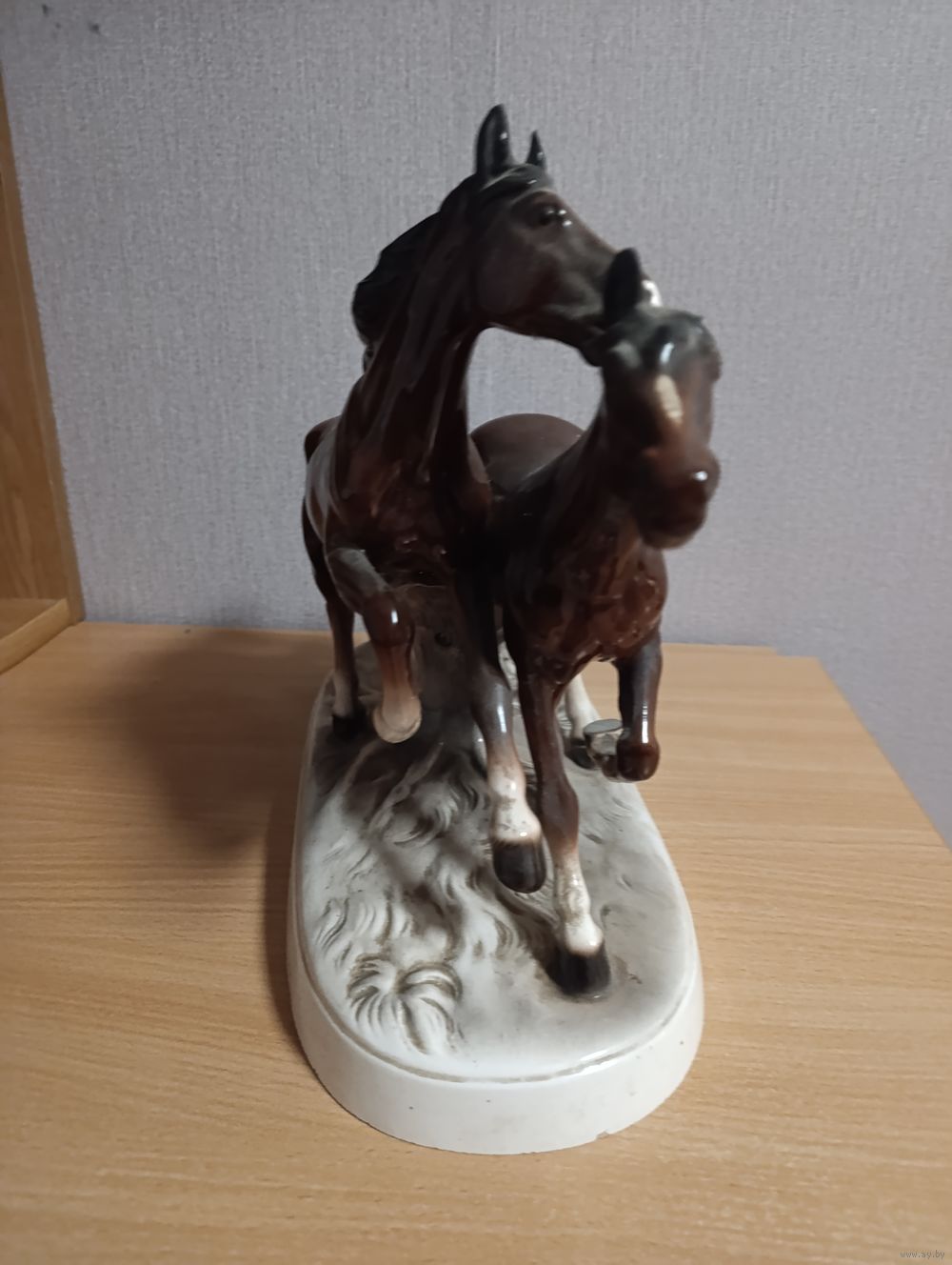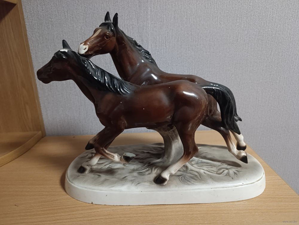 Статуэтка "Бегущие кони", фарфор, роспись, фабрика "Hertwig&Co", Германия, 1941-1958 гг. Под реставрацию. Отломано ухо