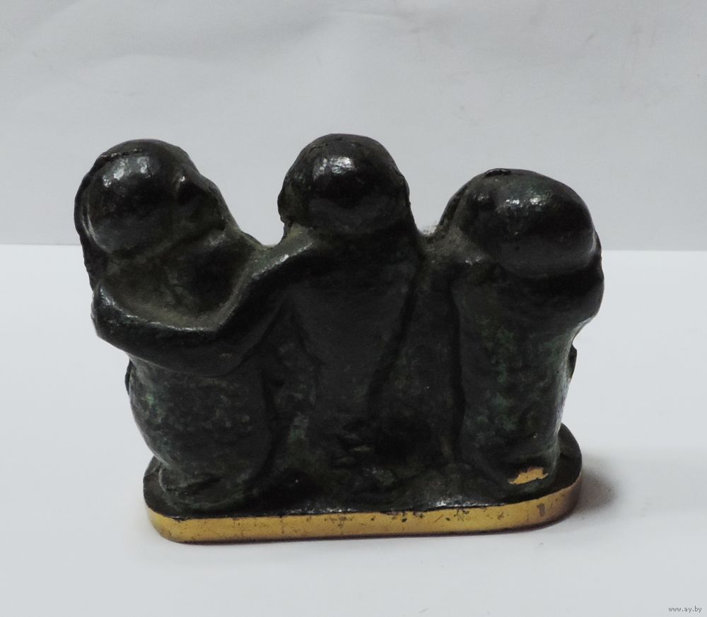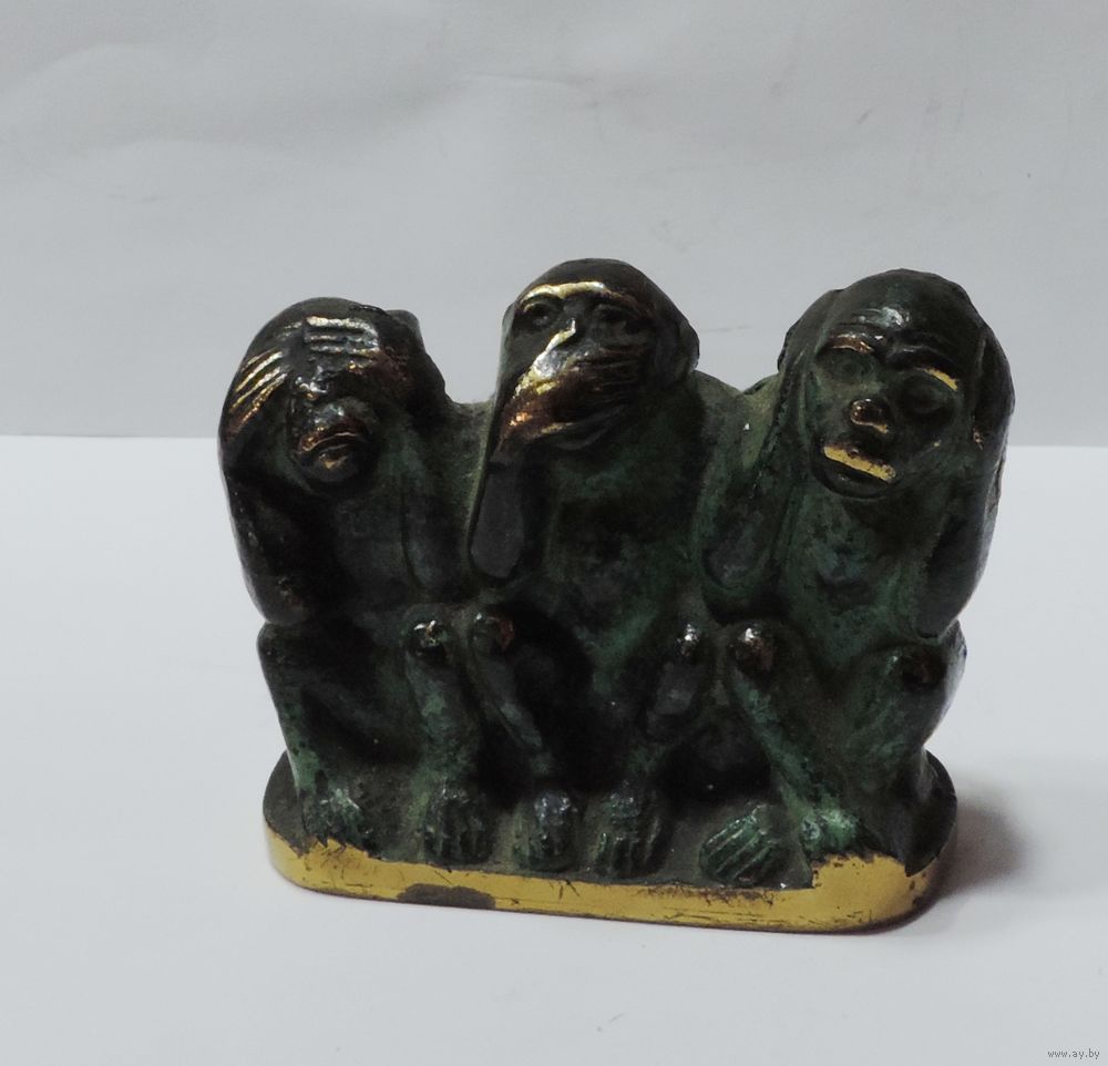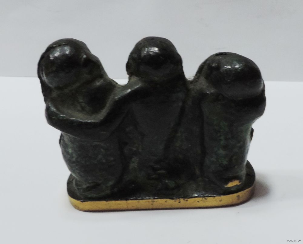 Статуэтка бронзовая "3 обезьяны ( Не вижу, не слышу, не скажу). Европа. Высота 4.5 см.