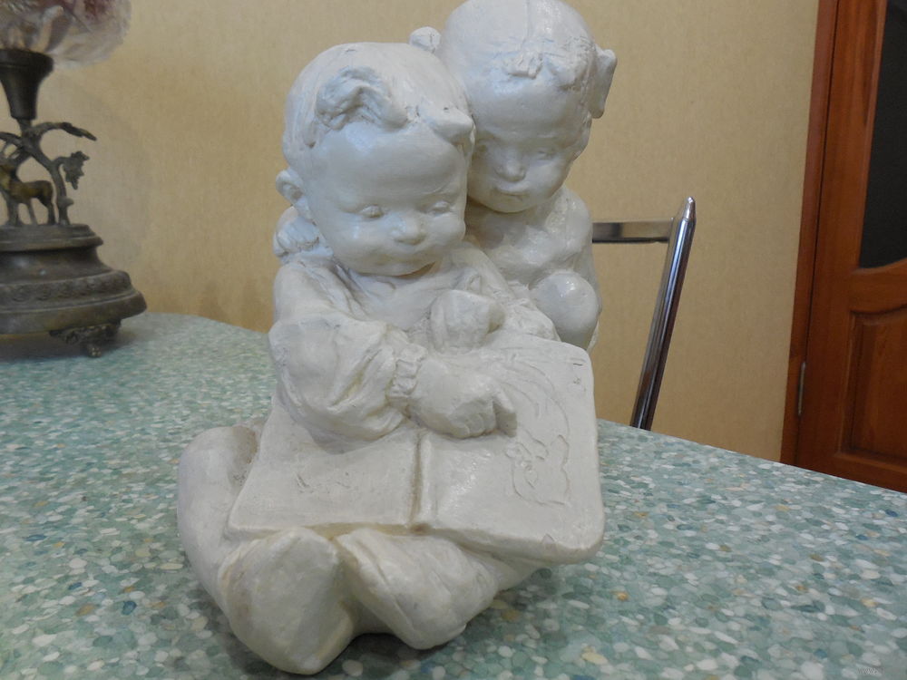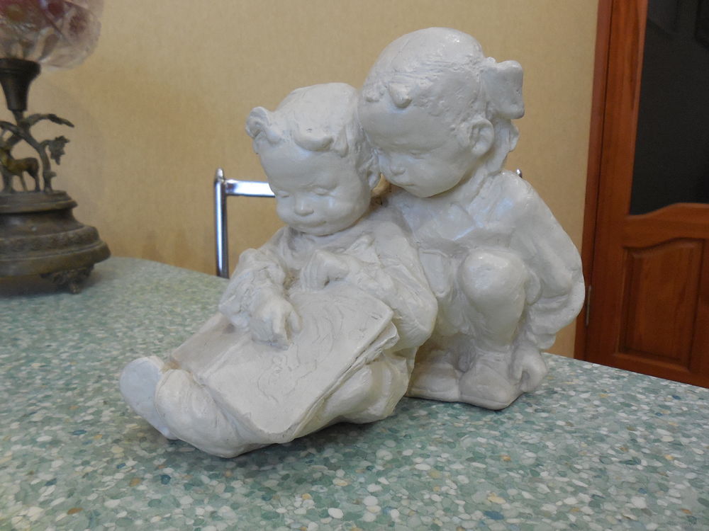 Статуэтка "Читающие Дети", Материал- Гипс, Дмитровский фарфоровый завод Скульптор: Полынская Нина Павловна Высота 16 см. Ширина 20 см. Модель: 1950-е гг
