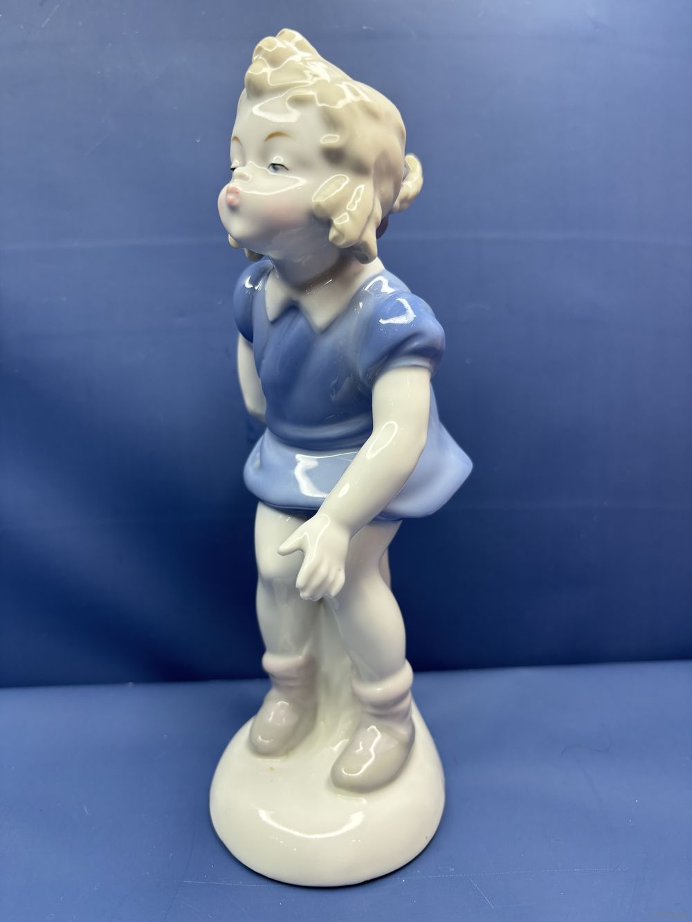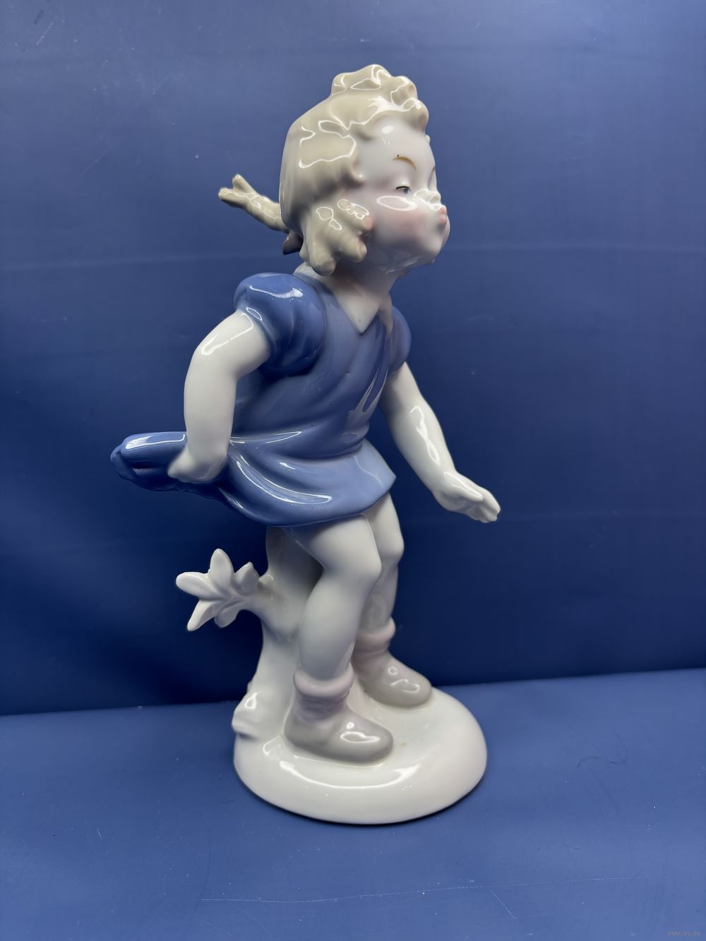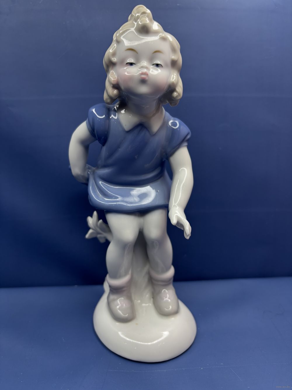 Статуэтка Девочка на пне целует фарфор, роспись, 1949–1951гг. Винтажная немецкая статуэтка