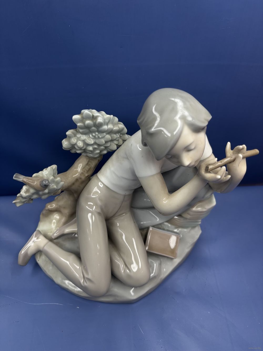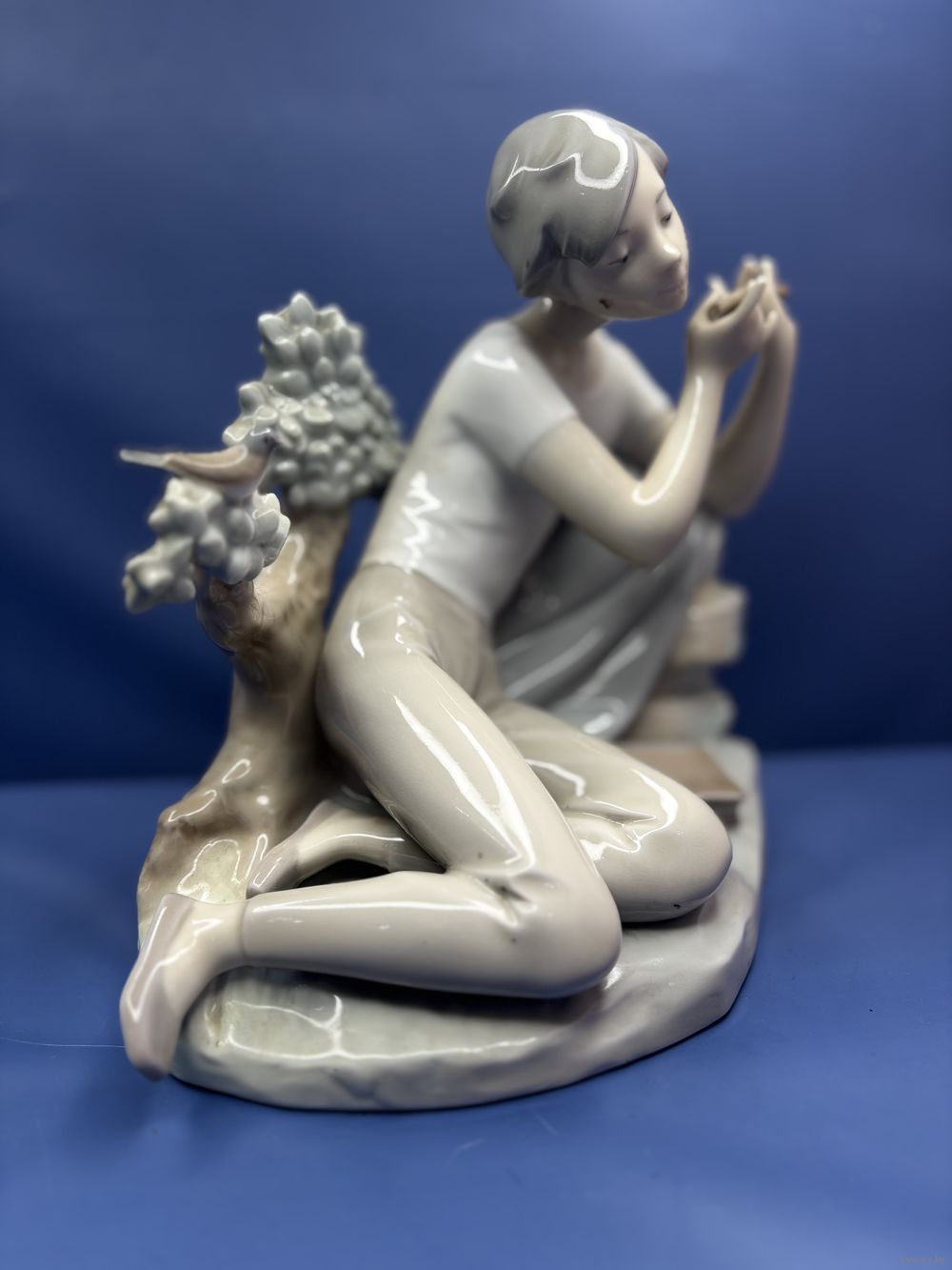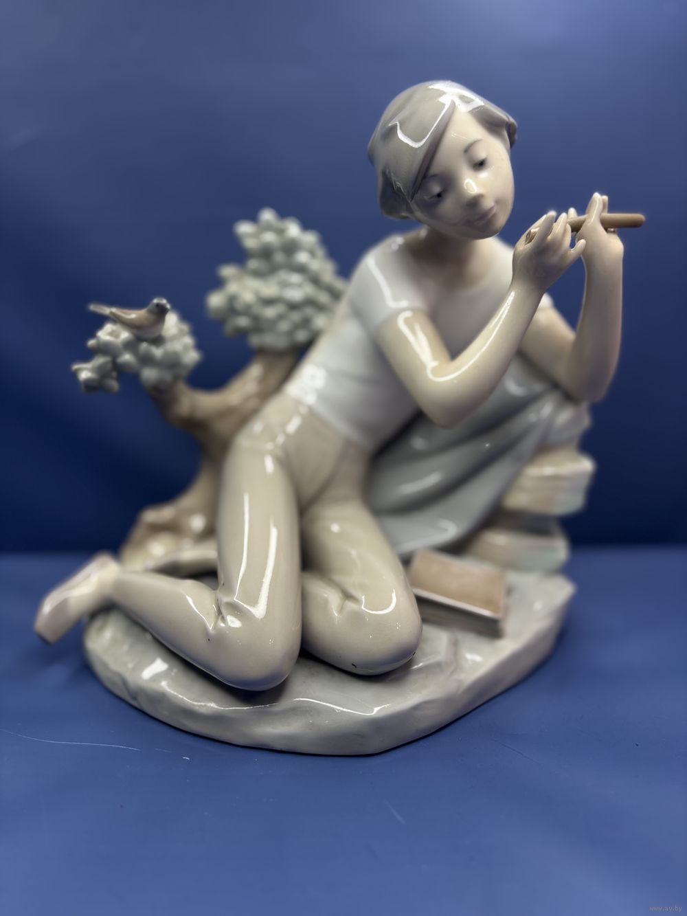 Статуэтка Девушка с флейтой и книгой Урок игры на флейте Фарфор, подглазурная роспись. 1980-е г. Испания. Клеймо: Фабрика LLADRO ,высота - 20 см.