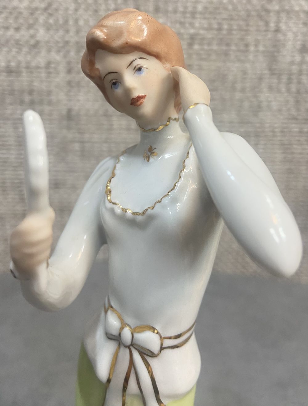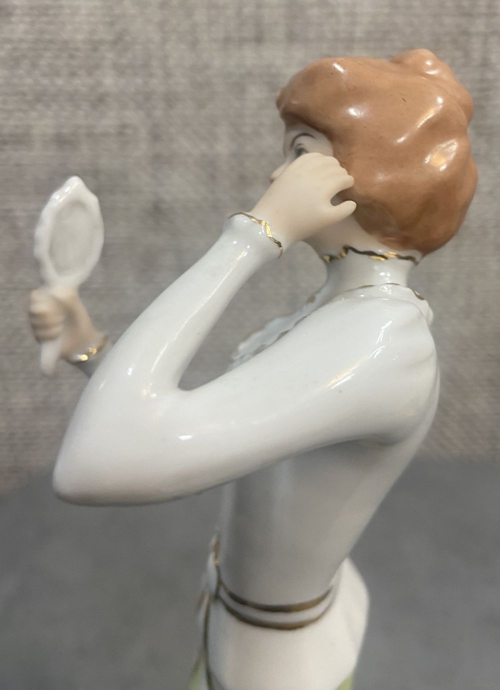 Статуэтка Девушка с зеркалом , фарфор Royal Dux Bohemia Чехословакия. Высота 20 см.