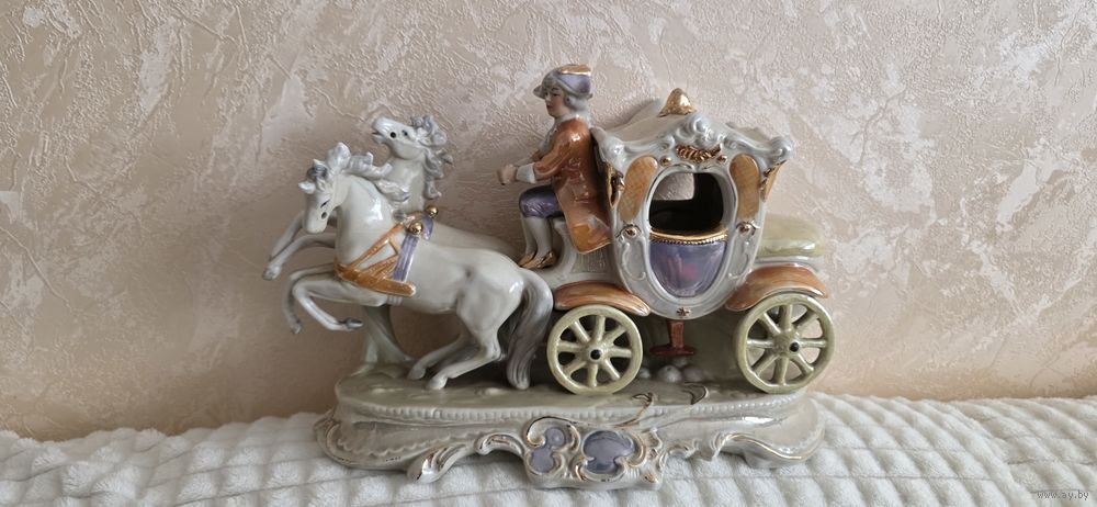 Статуэтка фарфор Карета Германия. Номерная. Длина 27 см высота 18 см ширина 12 см. Целая без сколов и реставраций. Смотрите другие мои лоты. Высылаю почтой ЕВРОПОЧТОЙ