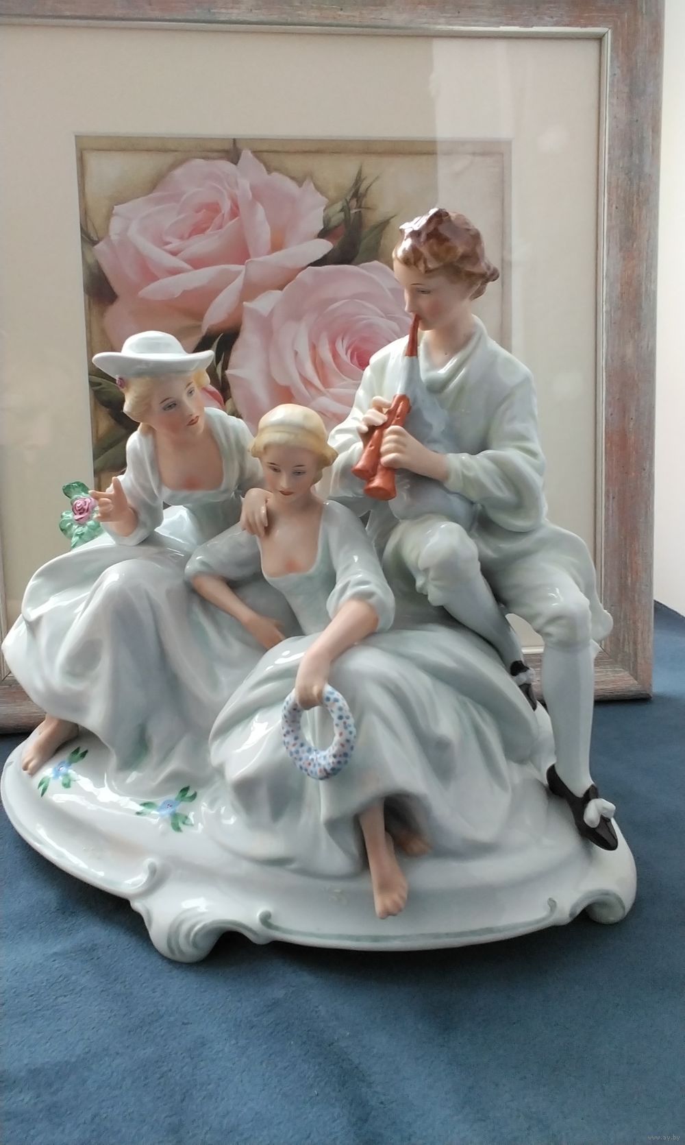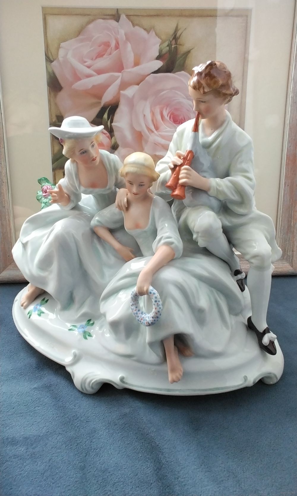 Большая, редкая, сюжетная фарфоровая статуэтка 50-х годов от мануфактуры SCHAUBACH KUNST позднее WALLENDORF, Германия.