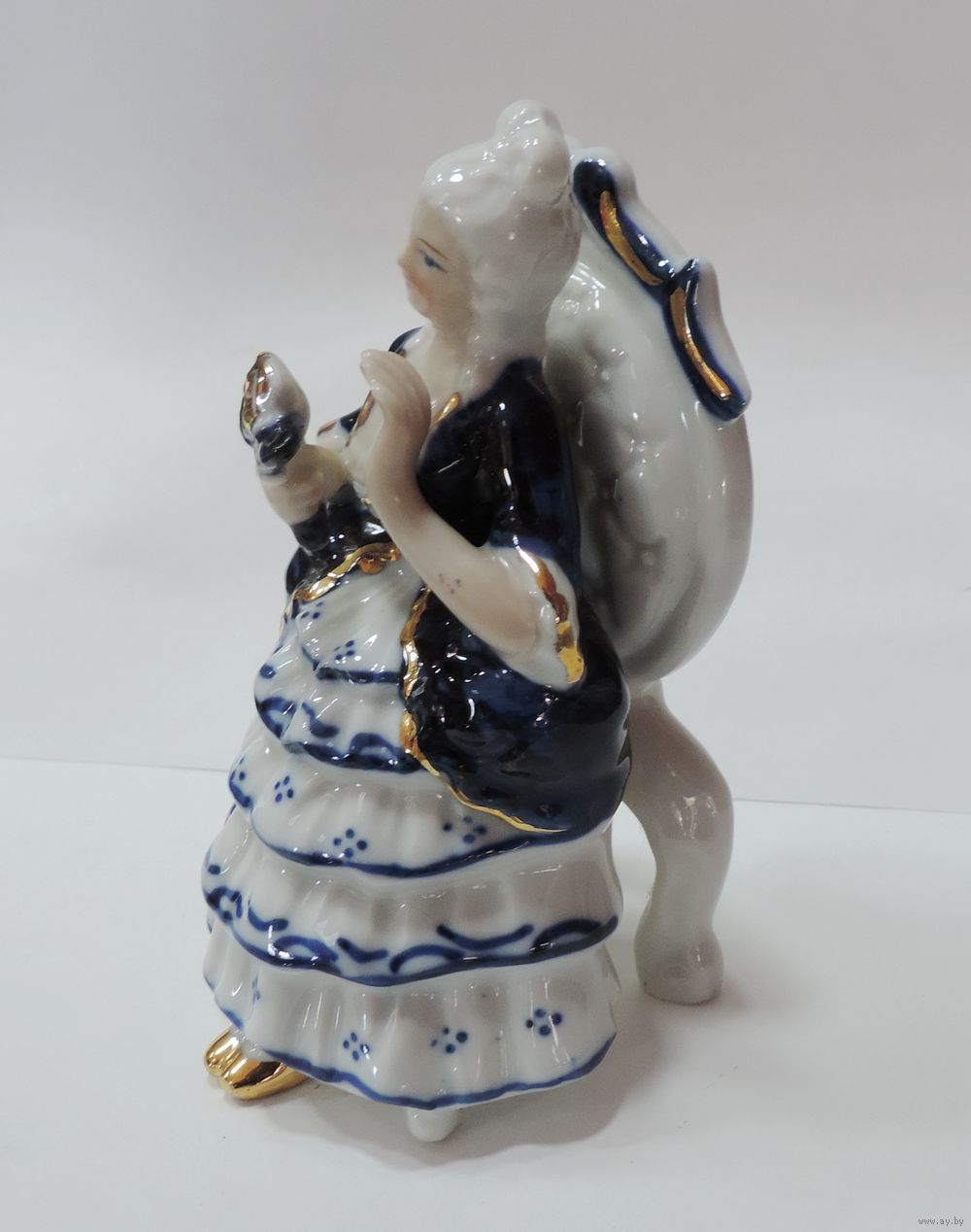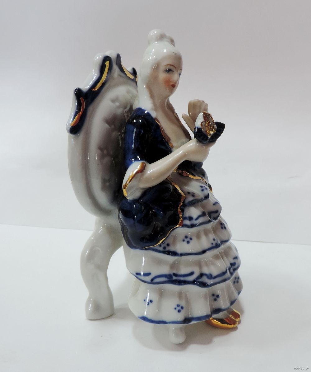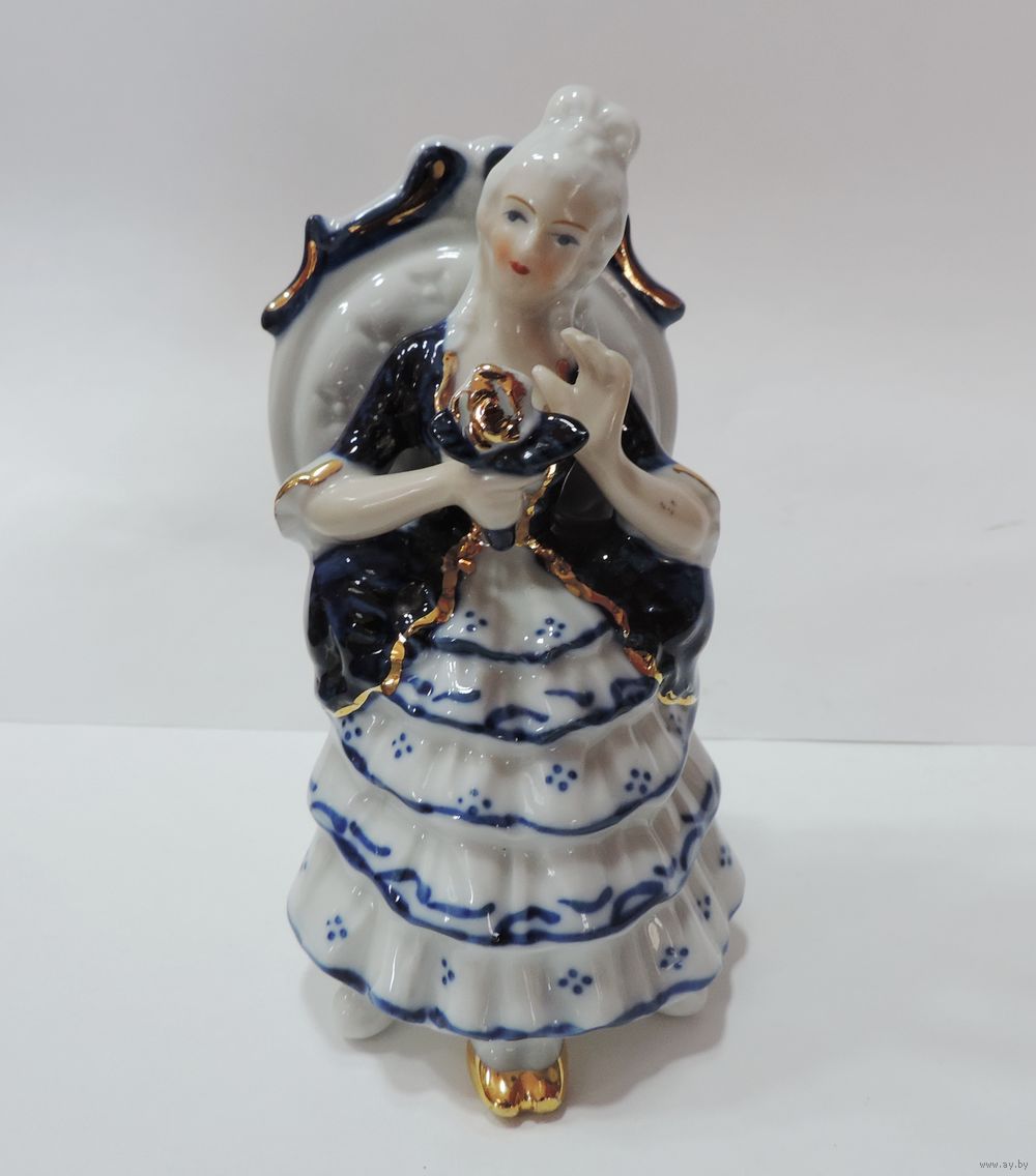Статуэтка фарфоровая "Барышня на кресле с цветком" 70 -е годы Европа. Высота 12.5 см.