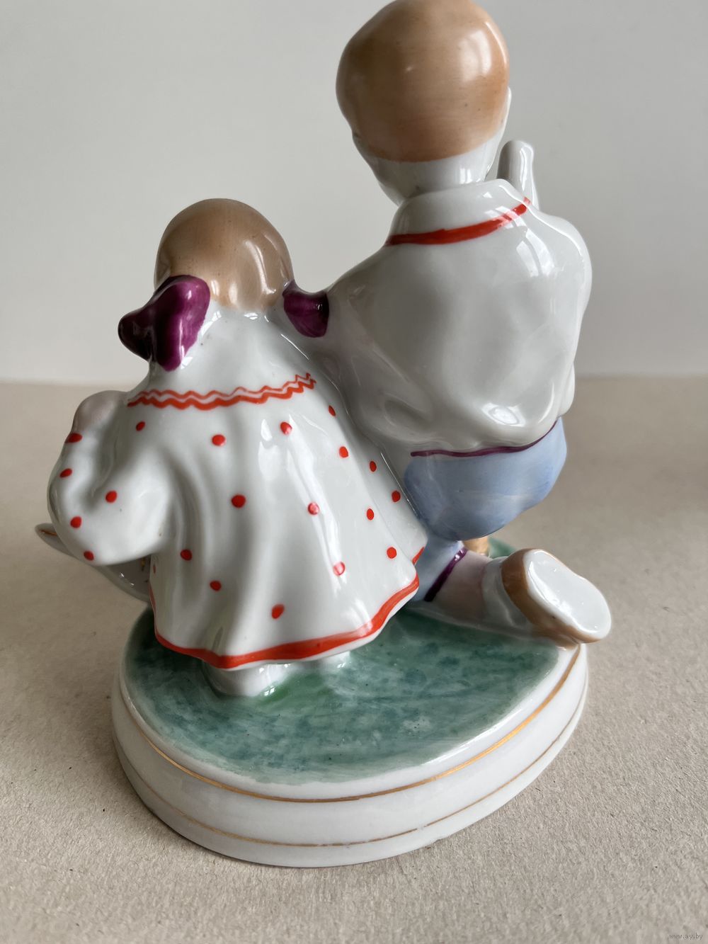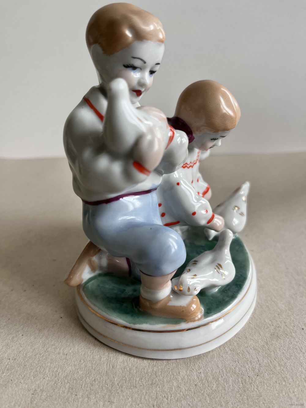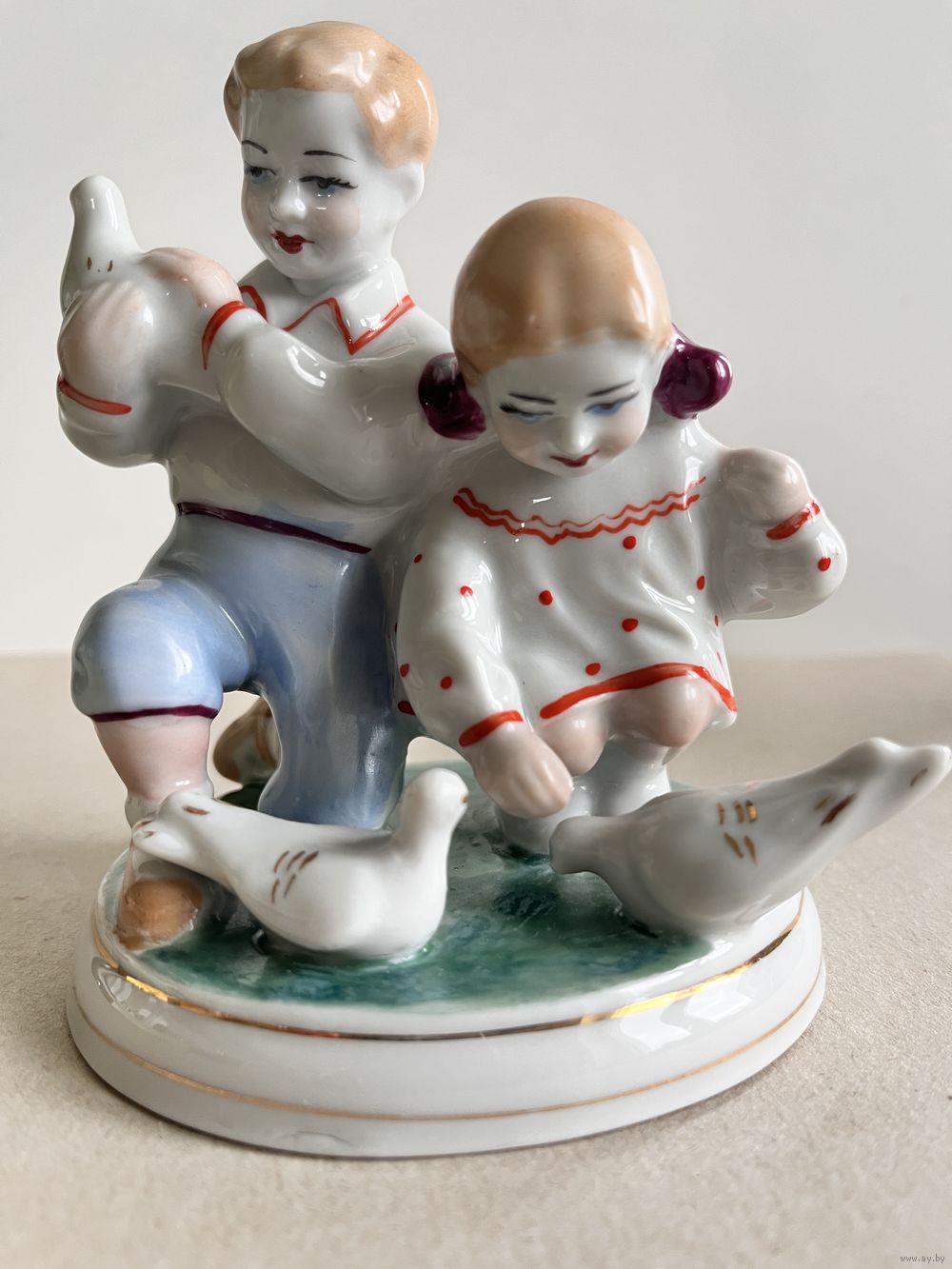 СТАТУЭТКА ФАРФОРОВАЯ "ДЕТИ КОРМЯТ ГОЛУБЕЙ".