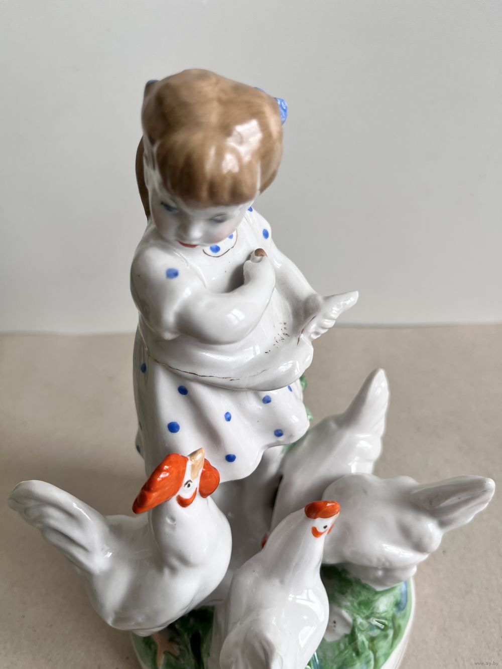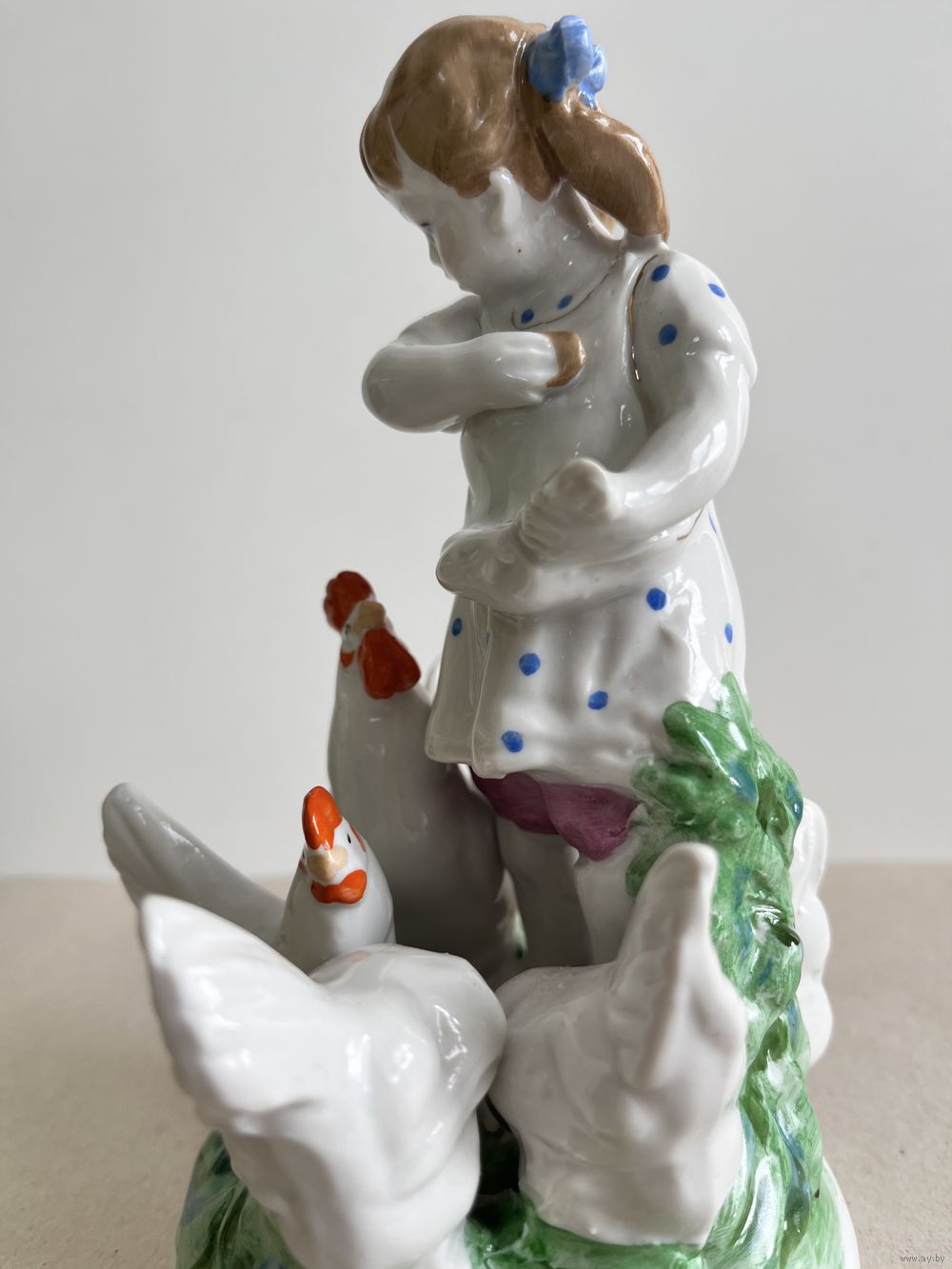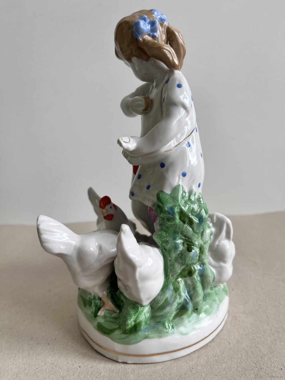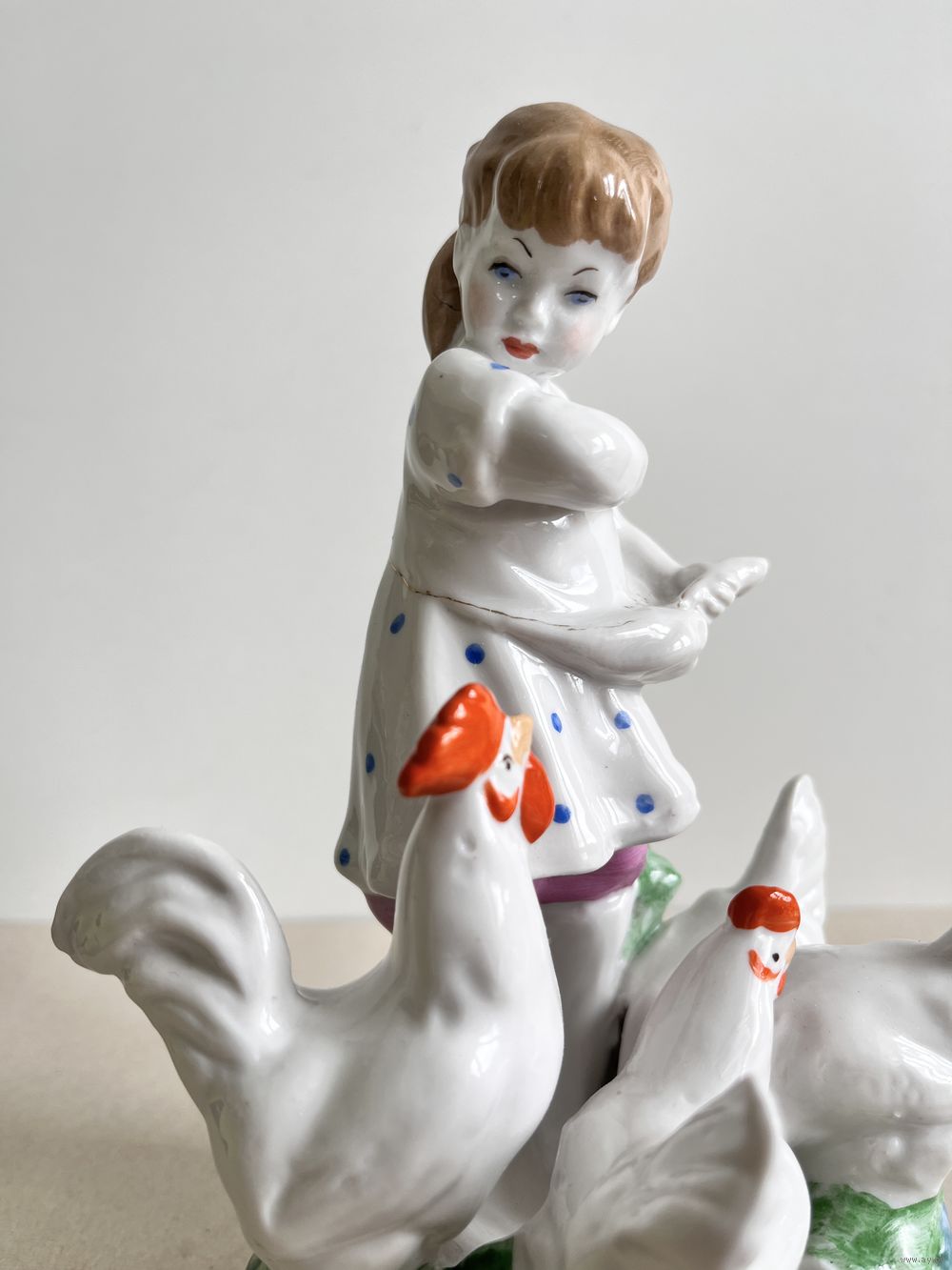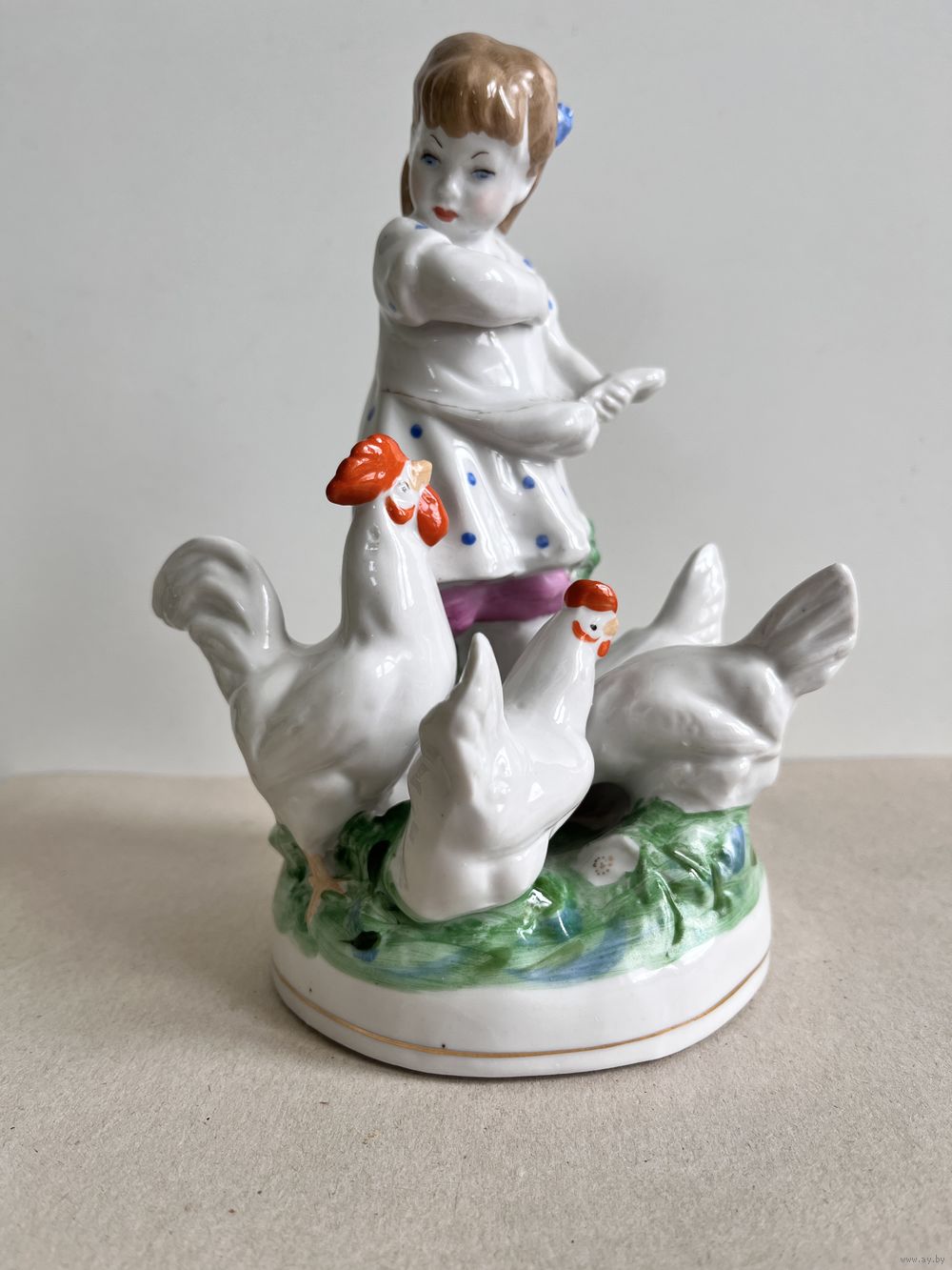 СТАТУЭТКА ФАРФОРОВАЯ "ДЕВОЧКА КОРМИТ КУР".