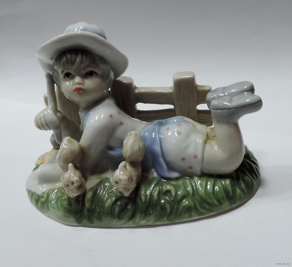 Статуэтка фарфоровая "Девочка с белками" 80-е годы Европа. Высота 8 см. Длина 12 см.