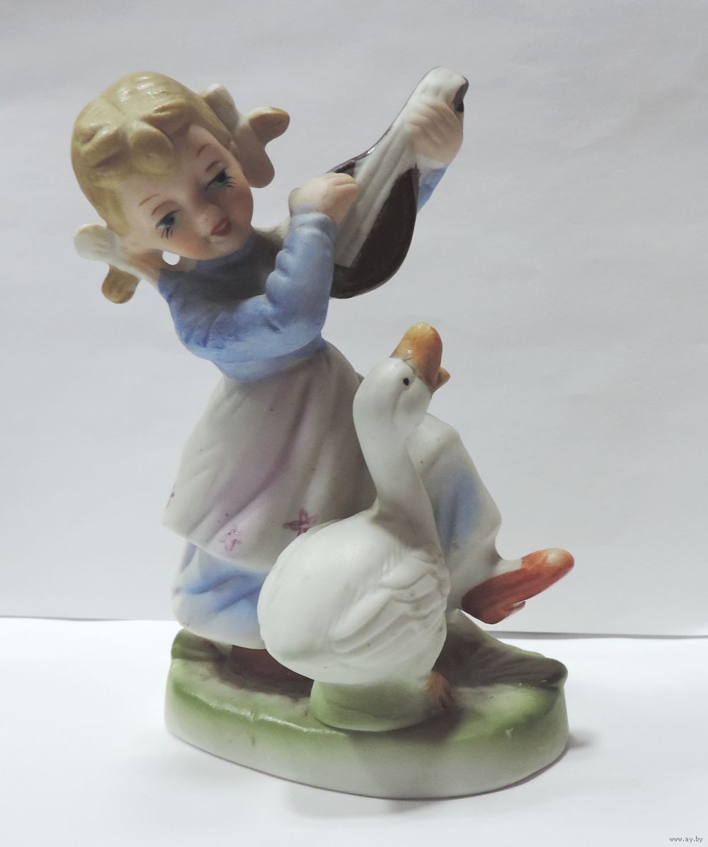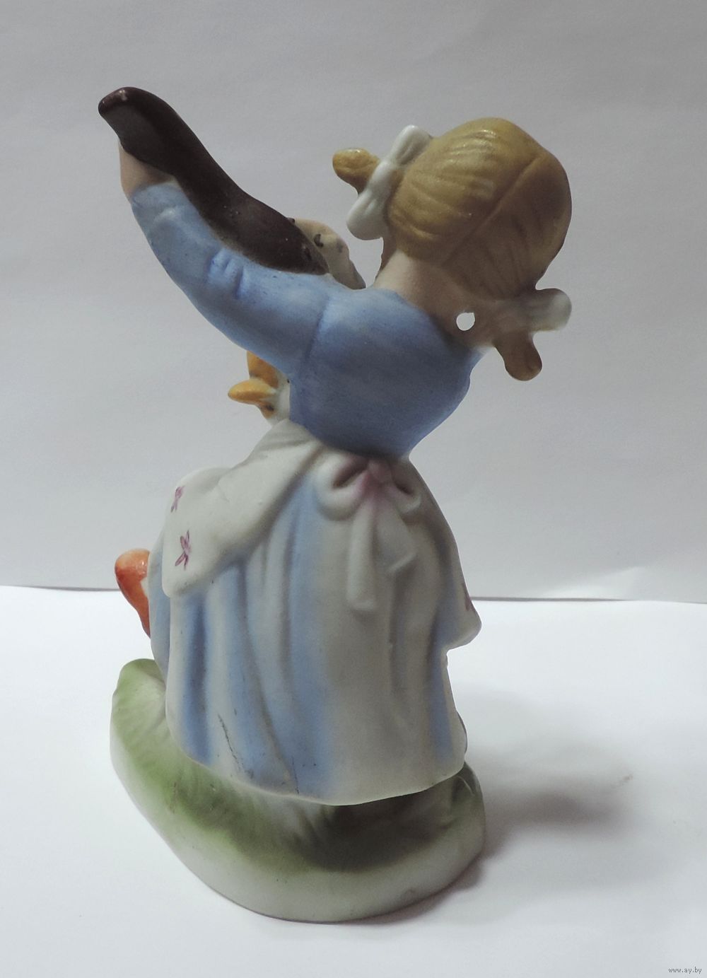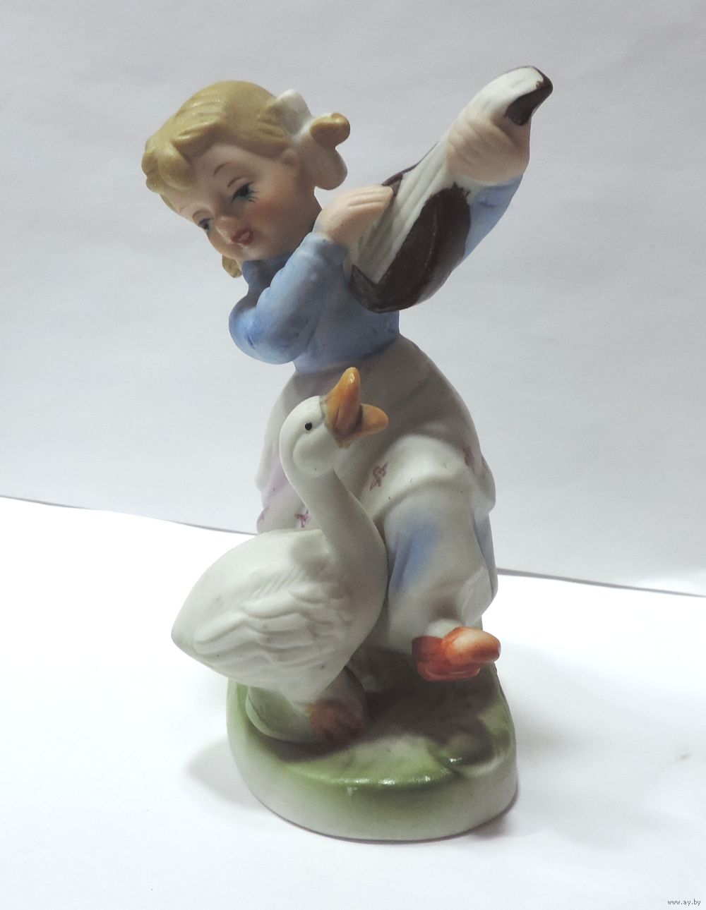 Статуэтка фарфоровая "Девочка танцует с гусем" 80-е годы Европа. Высота 12.5 см.