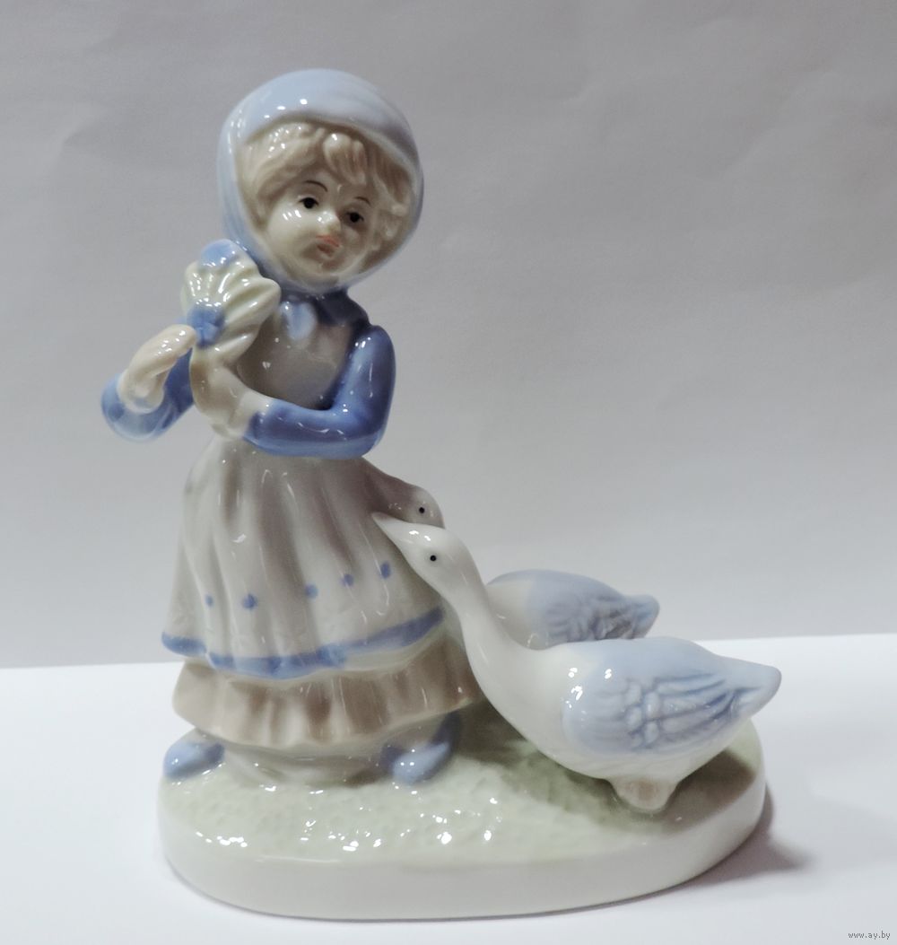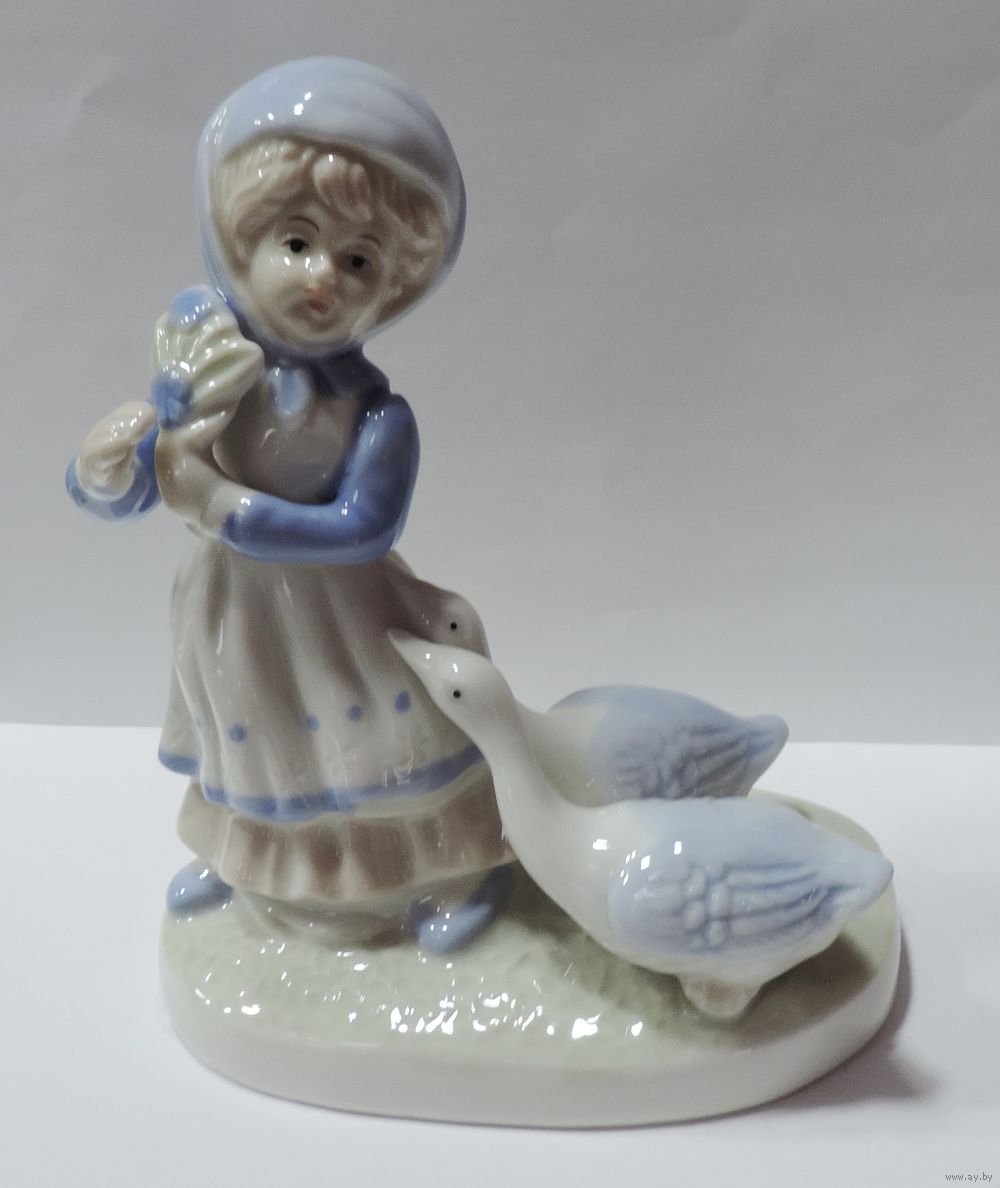 Статуэтка фарфоровая "Девушка и гуси" 80-е годы Европа. Высота 14.5 см. Целые, без реставрации.