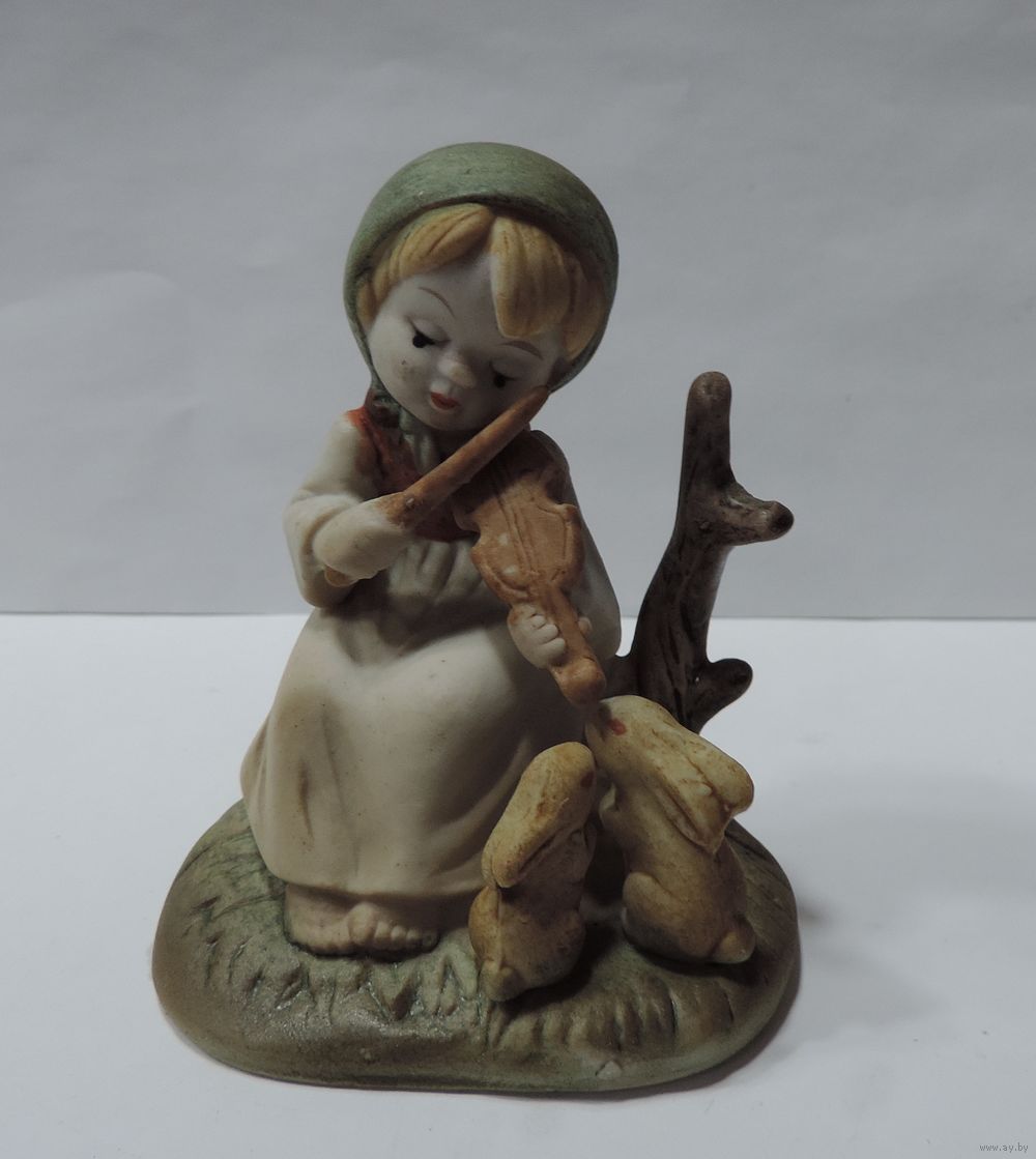 Статуэтка фарфоровая "Девушка играет на скрипке и зайцы" 80-е годы Европа. Высота 8 см.