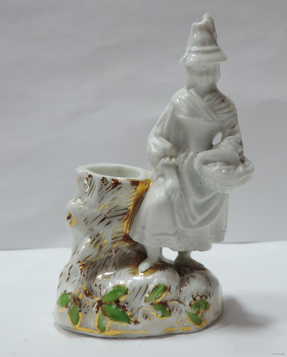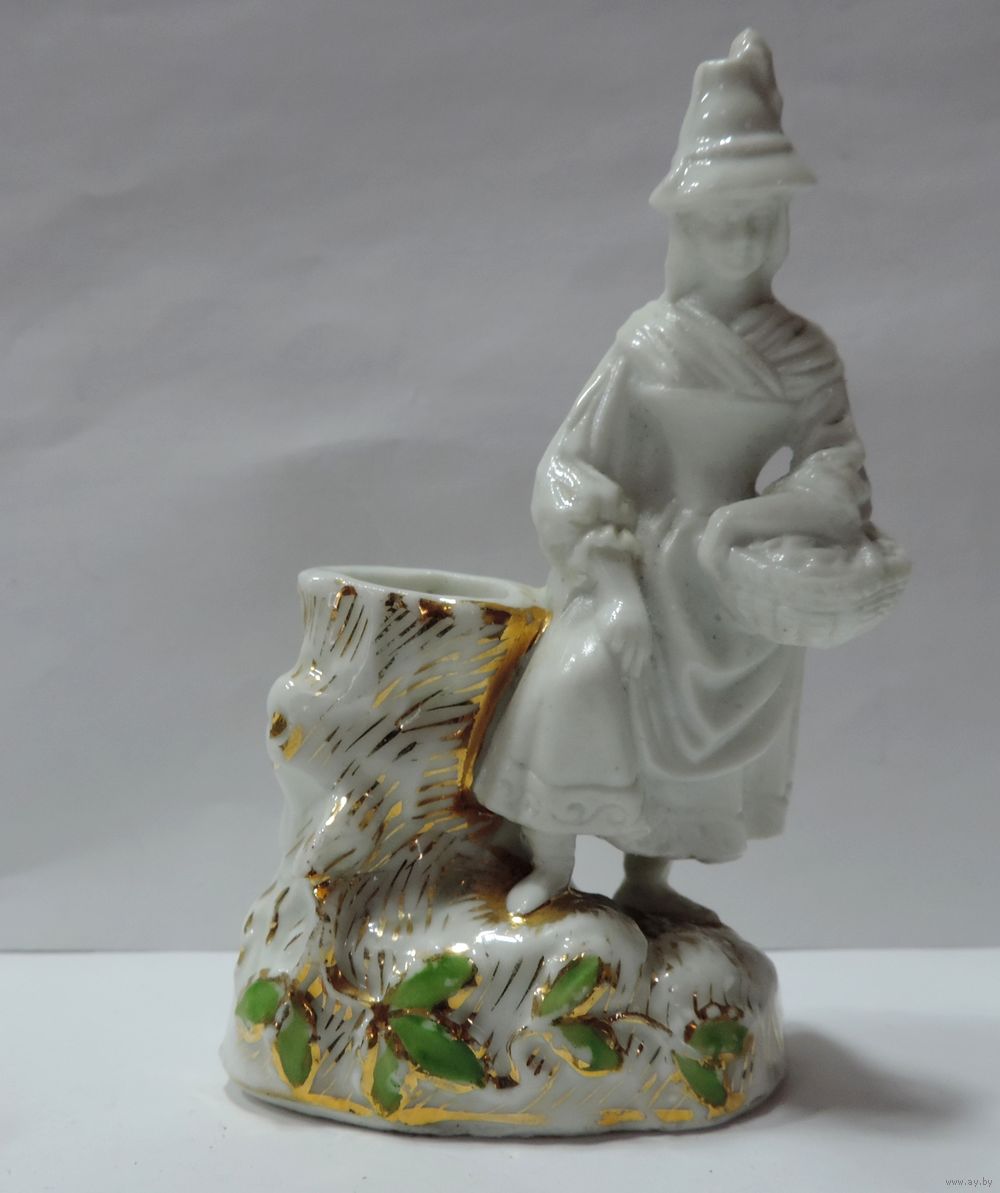 Статуэтка фарфоровая "Девушка с корзинкой у пня" 50-60-е годы Европа. Высота 10 см.