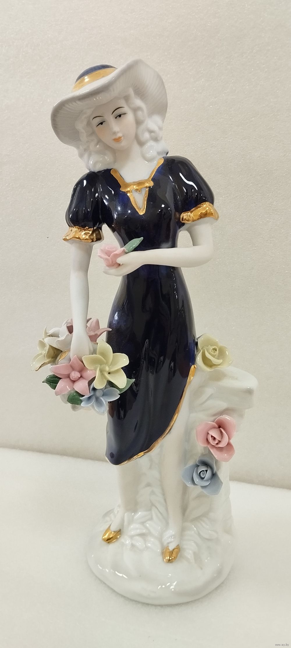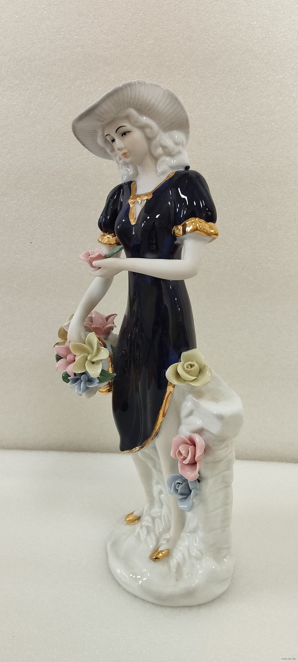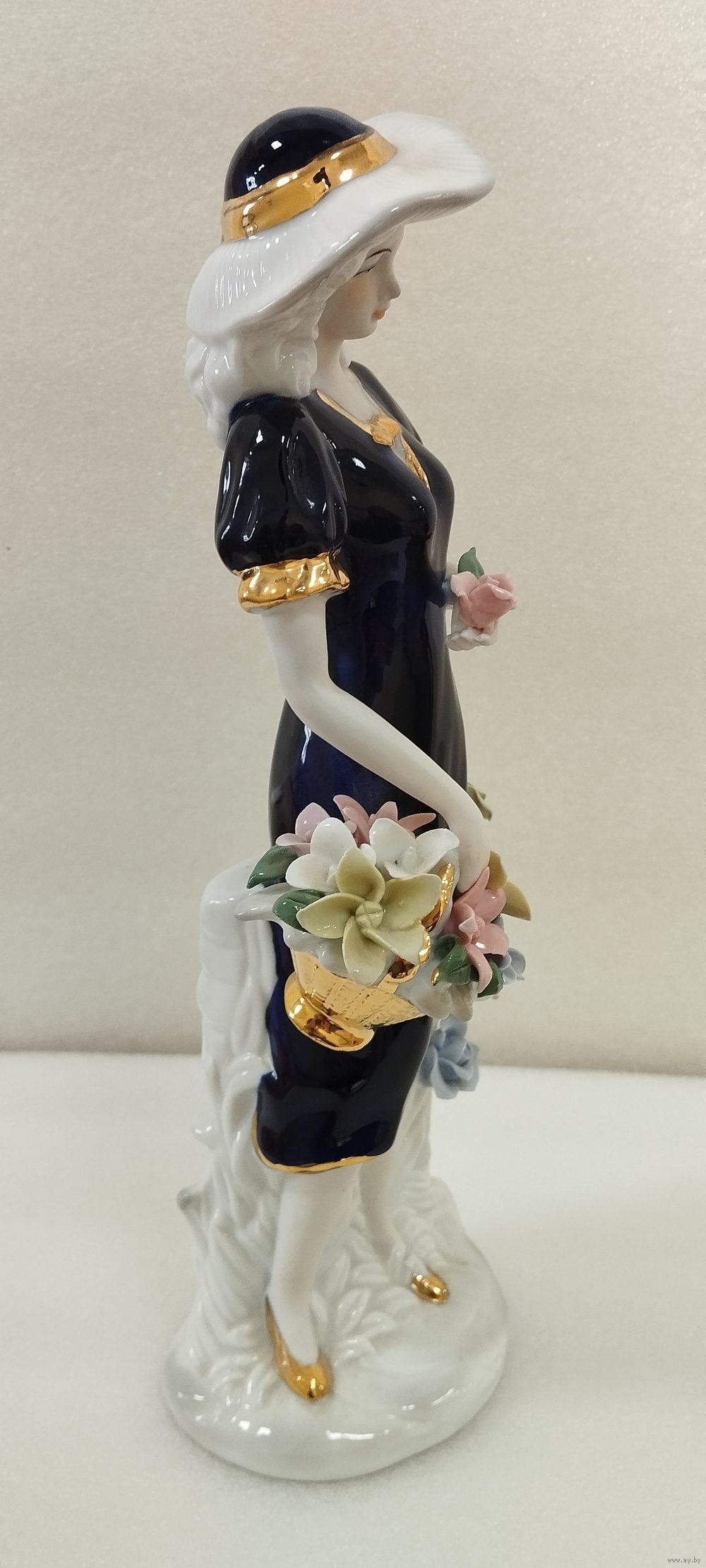 Статуэтка фарфоровая Девушка в шляпке с корзиной цветов, высота 30 см. Европа