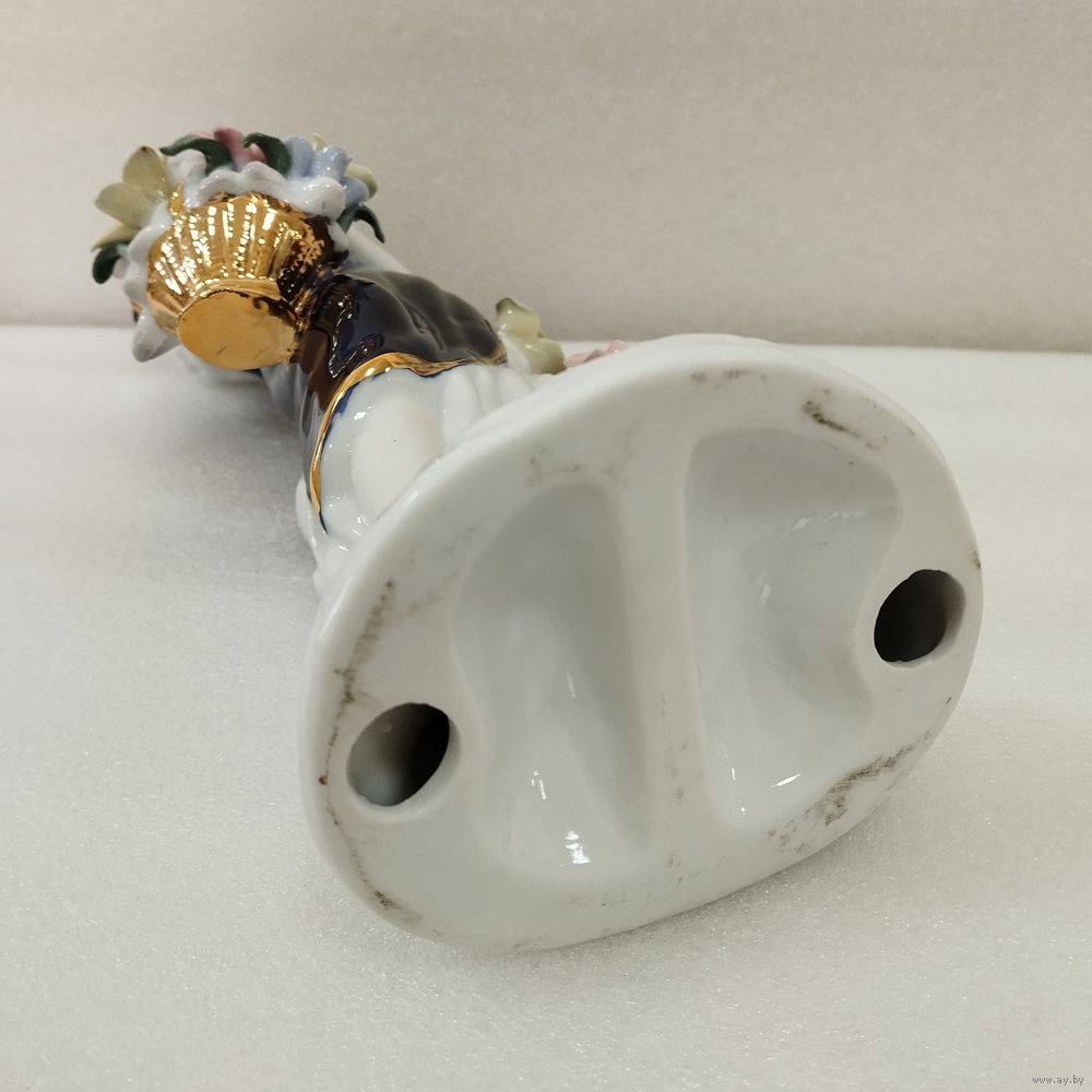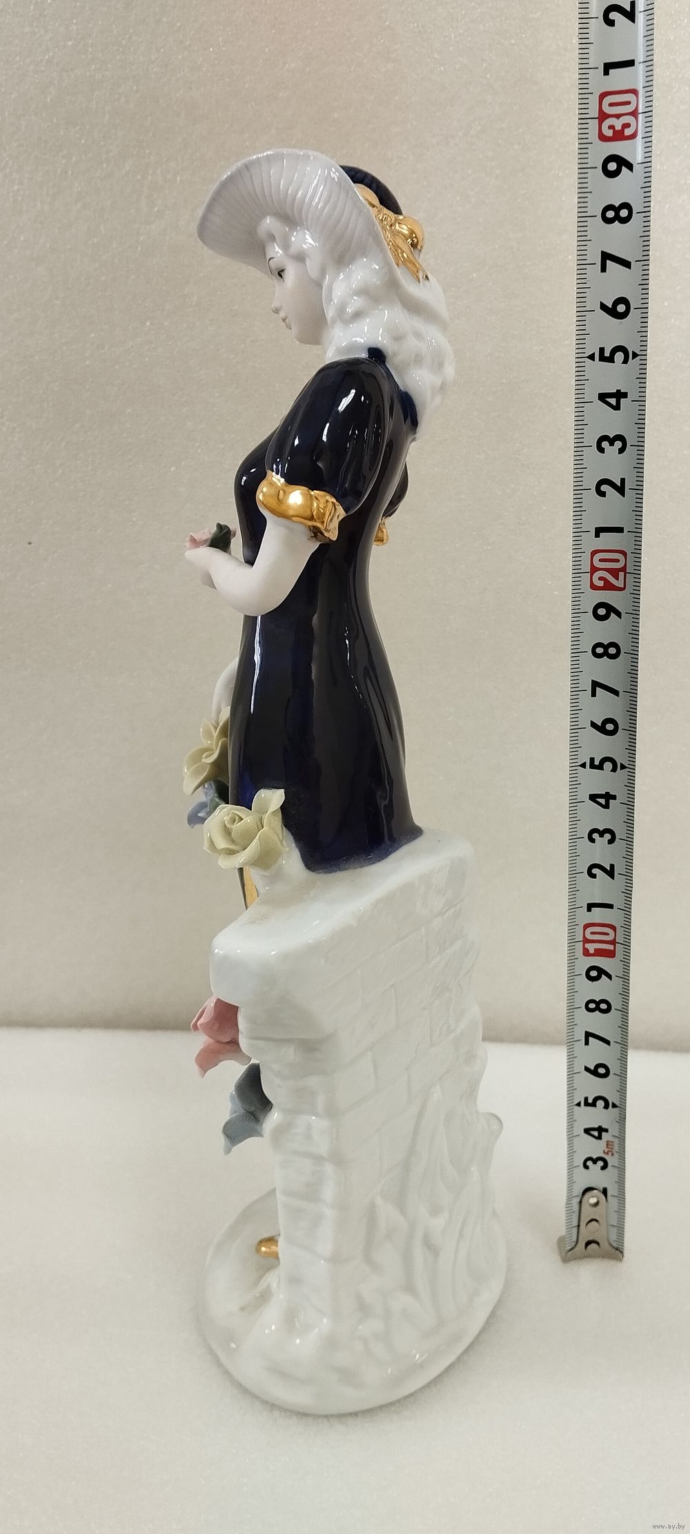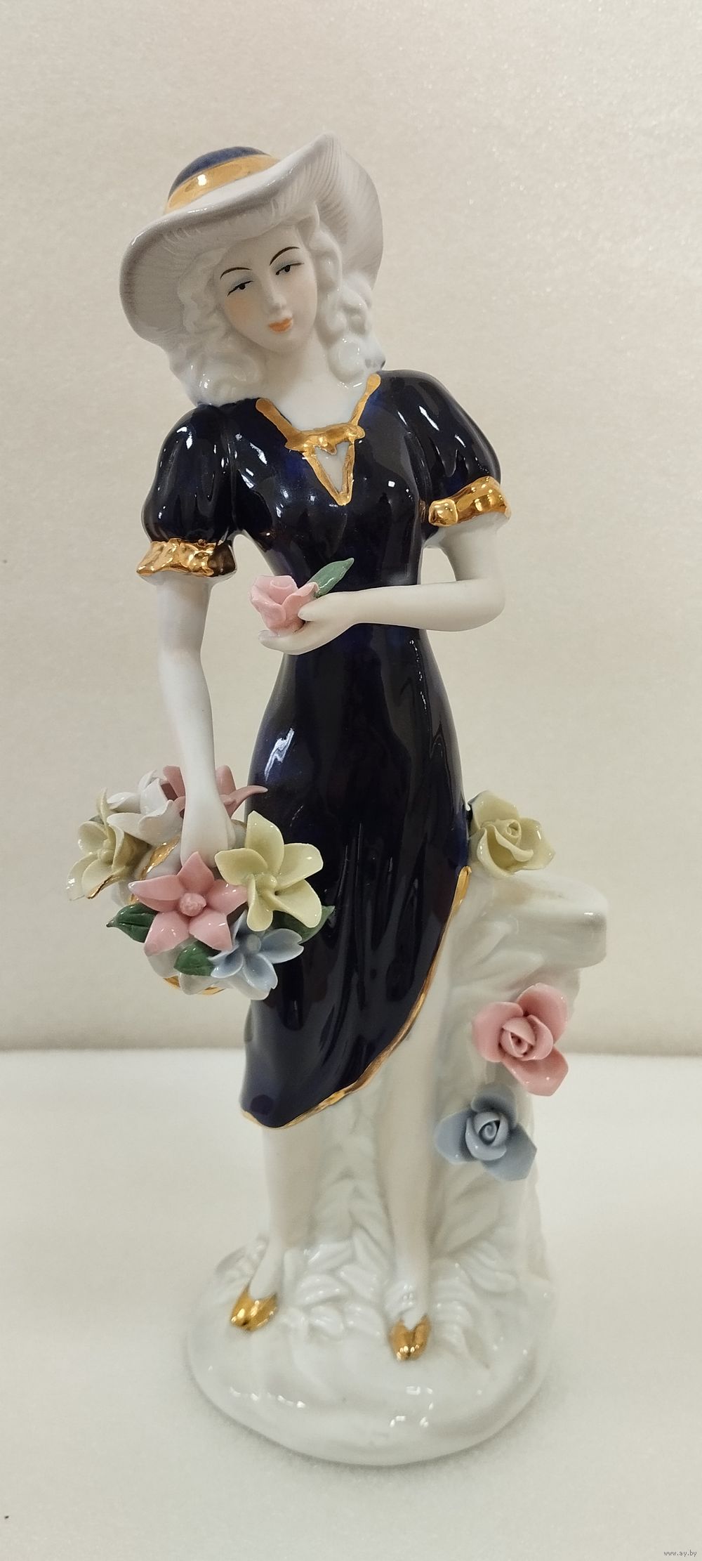 Статуэтка фарфоровая Девушка в шляпке с корзиной цветов, высота 30 см. Европа