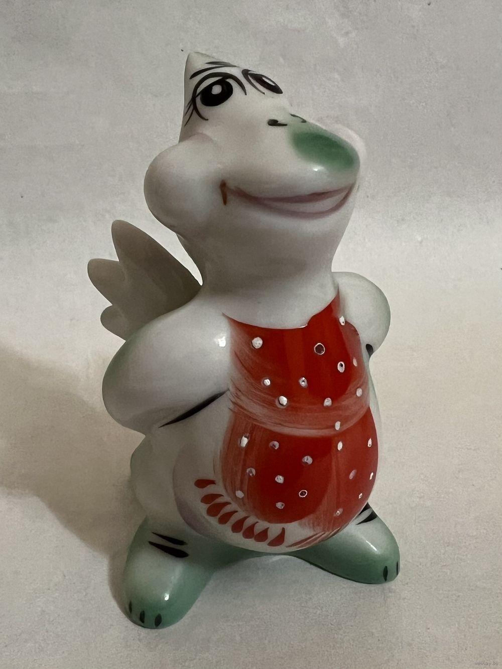 Фарфоровая статуэтка "Дракон", высота 9,5 см, производство Добрушский Фарфоровый Завод (ДФЗ). Продавец не является экспертом, состояние лотов всегда оценивайте самостоятельно, по представленным фотографиям, после выигрышной ставки вы получите предмет, изображенный на фотографии. Делая ставку вы принимаете условия продажи лота, установленные продавцом. Пересылку оплачивает покупатель. Выход на связь в течение 3 дней. Оплата лотов в течение 5 дней. Отправка лотов в течение 5 дней после оплаты и предварительной договорённости.