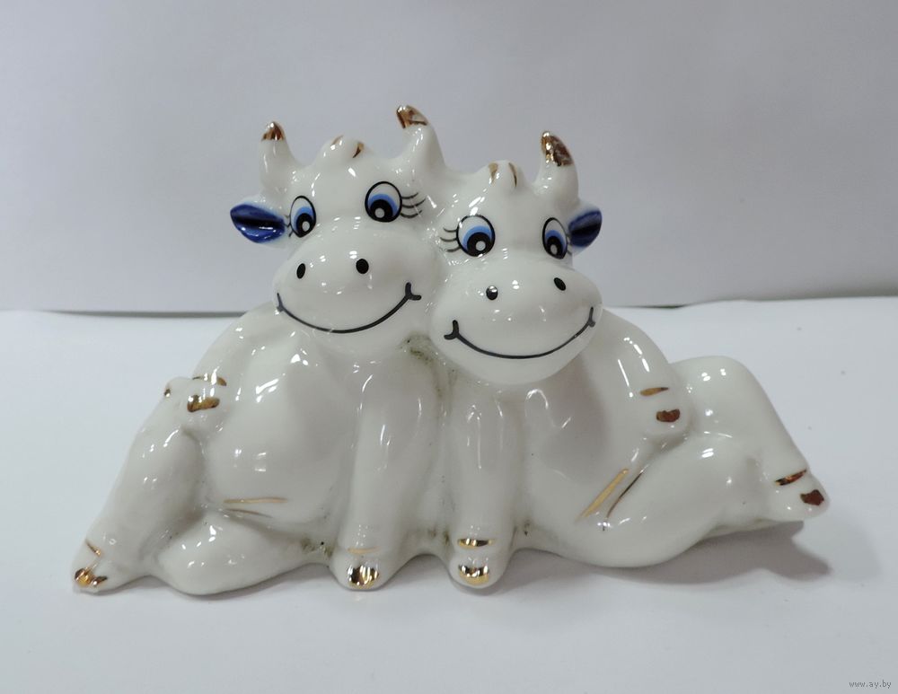 Статуэтка фарфоровая "Коровы" 90-е годы Европа. Высота 7 см.