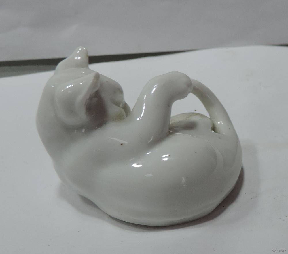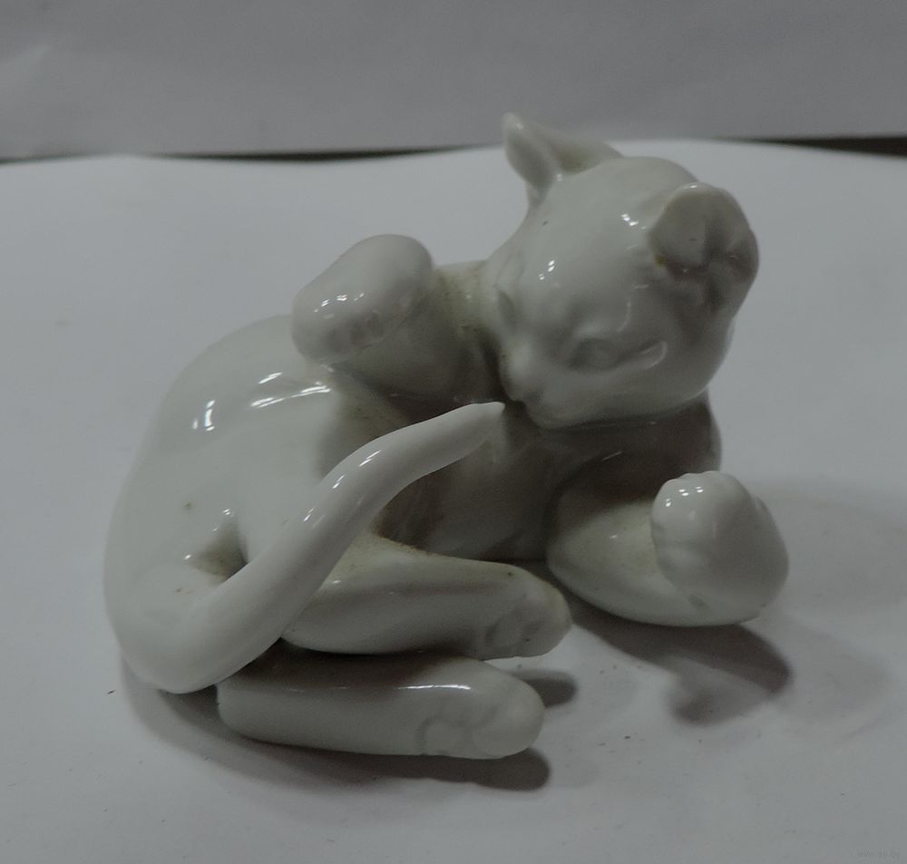 Статуэтка фарфоровая "Котик. Игра с хвостом" 60-е годы фирма Розенталь. Германия. Высота 4 см. Длина 5.5 см. Целая, без реставрации.