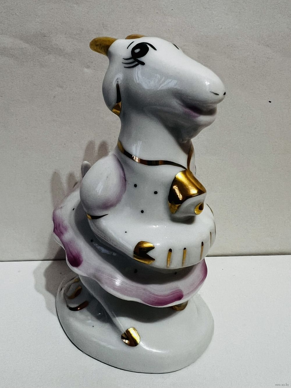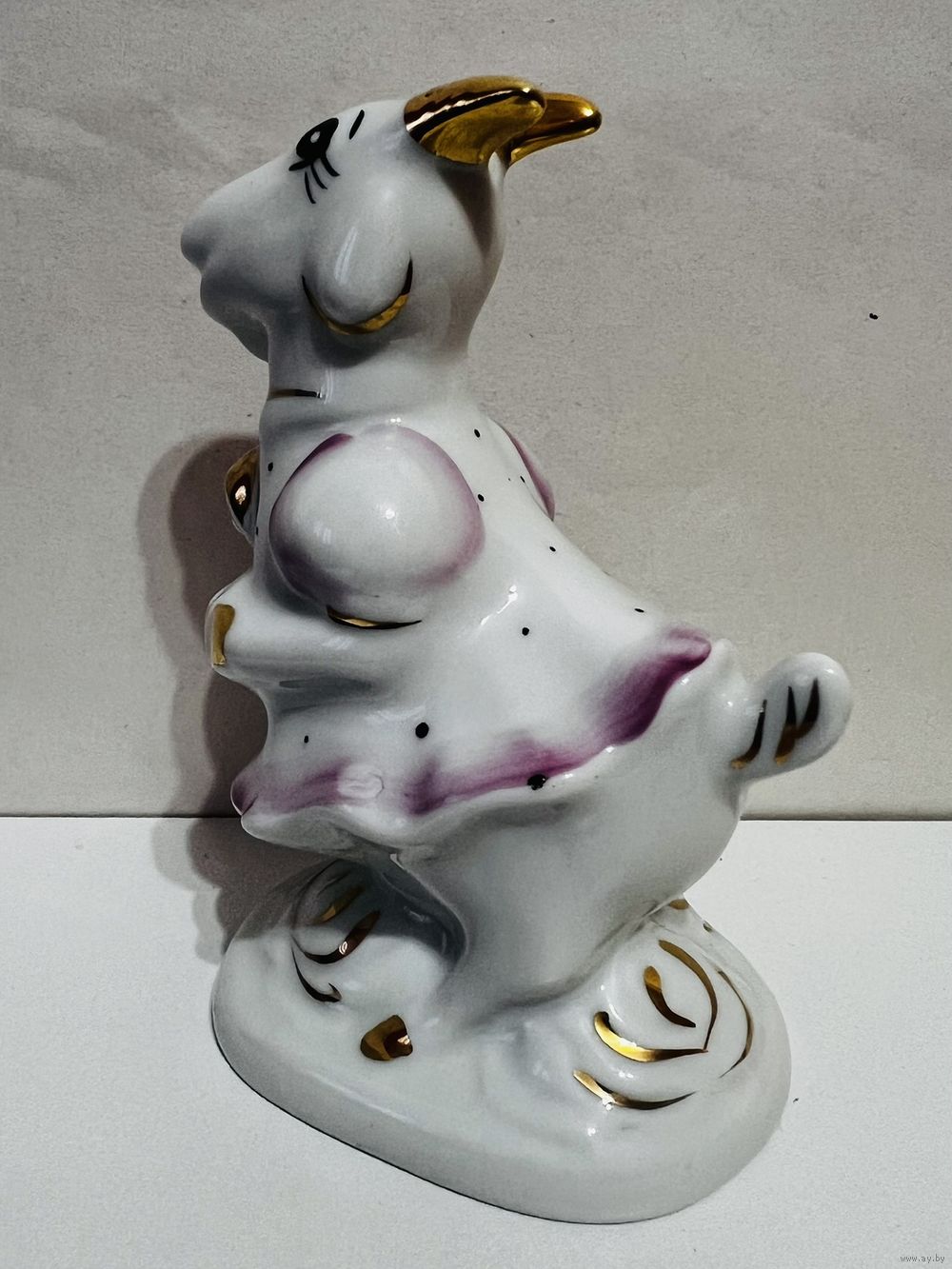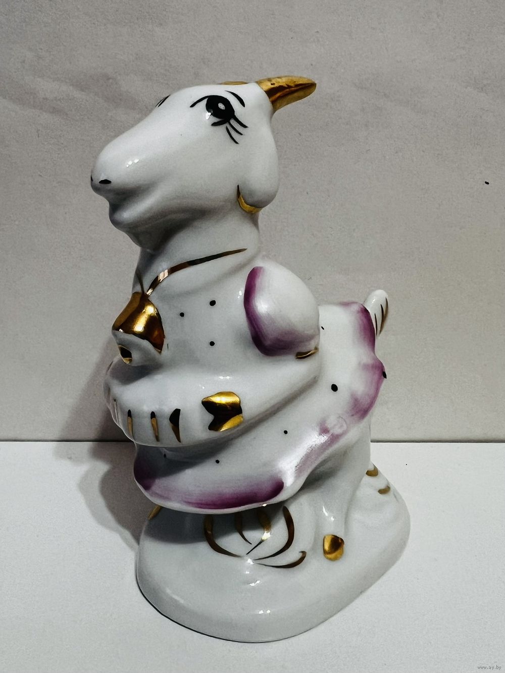 Фарфоровая статуэтка "Коза", высота 11 см, производство Добрушский Фарфоровый Завод (ДФЗ). Продавец не является экспертом, после выигрышной ставки вы получите предмет, изображенный на фотографии. Делая ставку вы принимаете условия продажи лота, установленные продавцом. Пересылку оплачивает покупатель. Выход на связь в течение 3 дней. Оплата лотов в течение 5 дней. Отправка лотов в течение 5 дней после оплаты и предварительной договорённости.