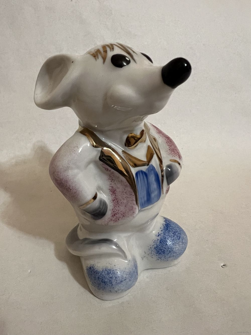 Фарфоровая статуэтка "Крыса", высота 11 см, производство Добрушский Фарфоровый Завод (ДФЗ). Продавец не является экспертом, состояние лотов всегда оценивайте самостоятельно, по представленным фотографиям, после выигрышной ставки вы получите предмет, изображенный на фотографии. Делая ставку вы принимаете условия продажи лота, установленные продавцом. Пересылку оплачивает покупатель. Выход на связь в течение 3 дней. Оплата лотов в течение 5 дней. Отправка лотов в течение 5 дней после оплаты и предварительной договорённости.