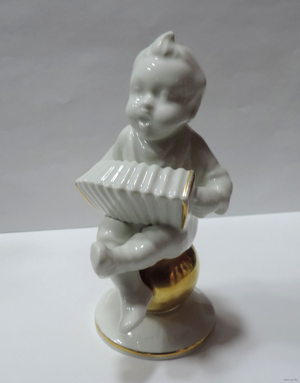 Статуэтка фарфоровая "Мальчик с гармошкой на шаре" 70-е годы Германия. Высота 13.5 см.