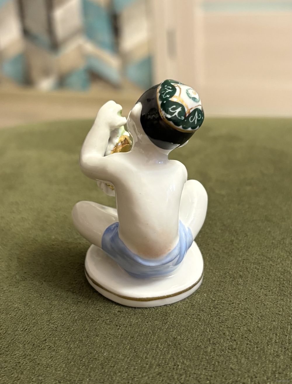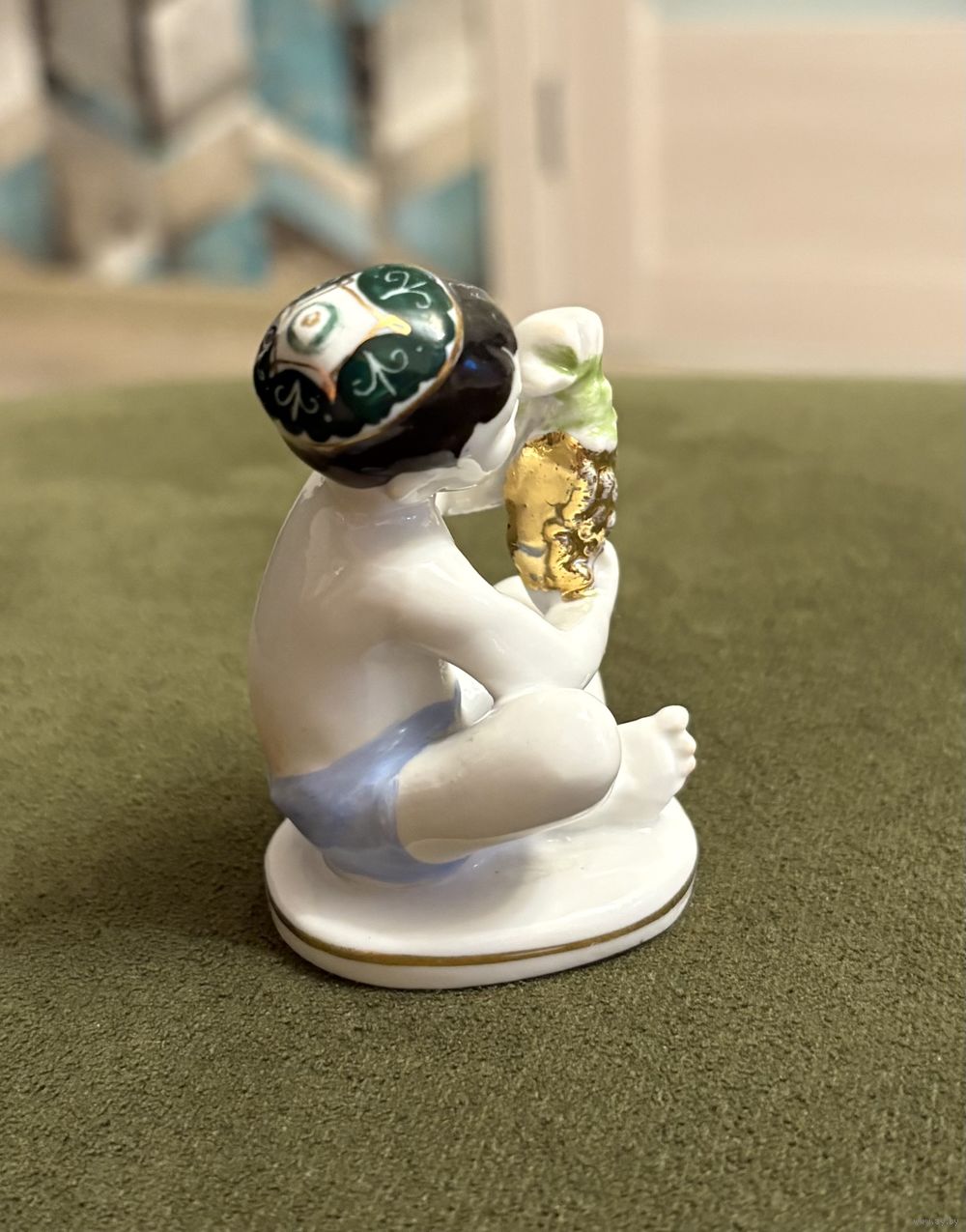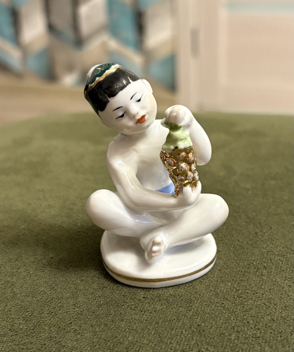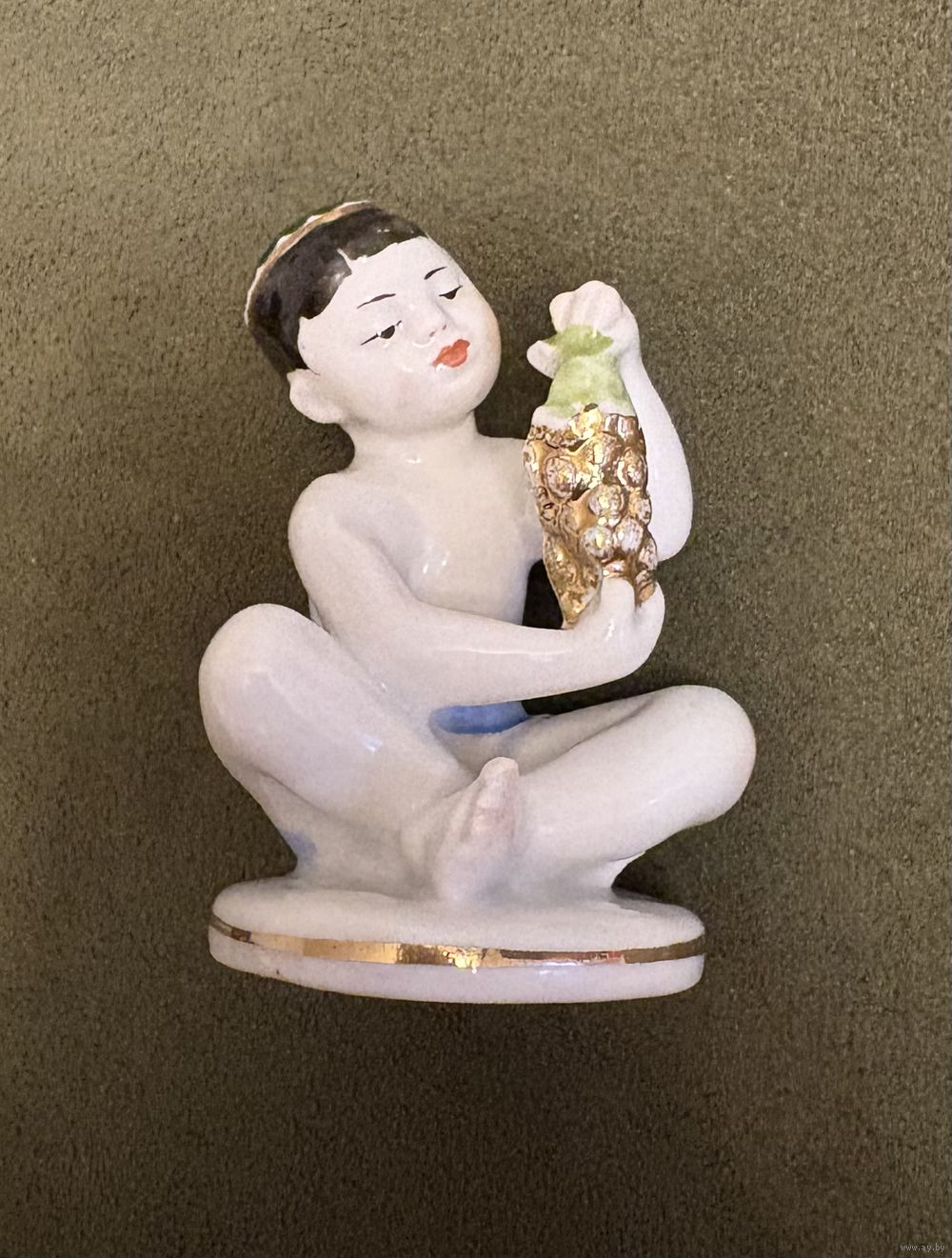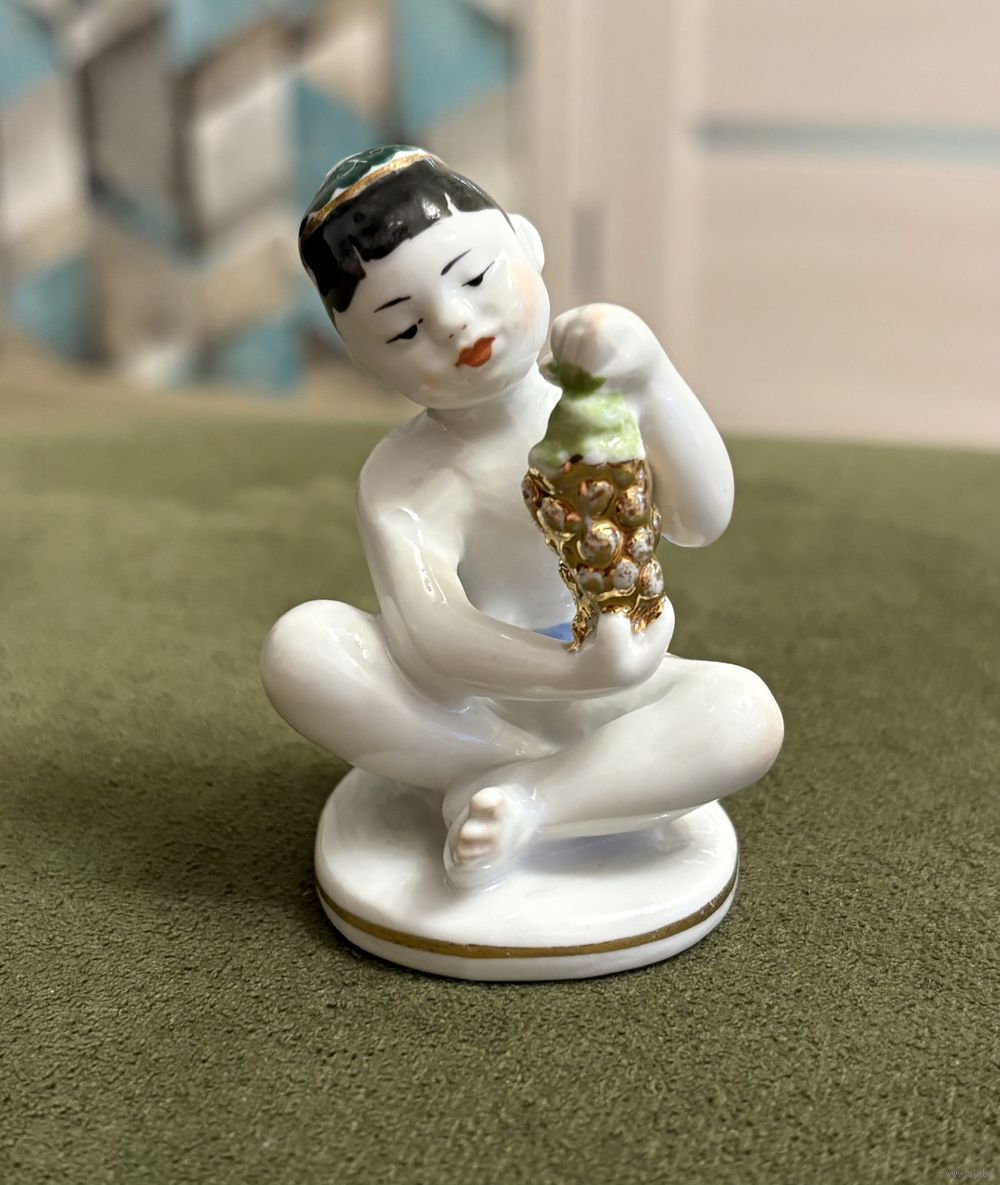 Статуэтка Фарфоровая Мальчик с виноградом . ЛФЗ . В/с . Высота 8 см .