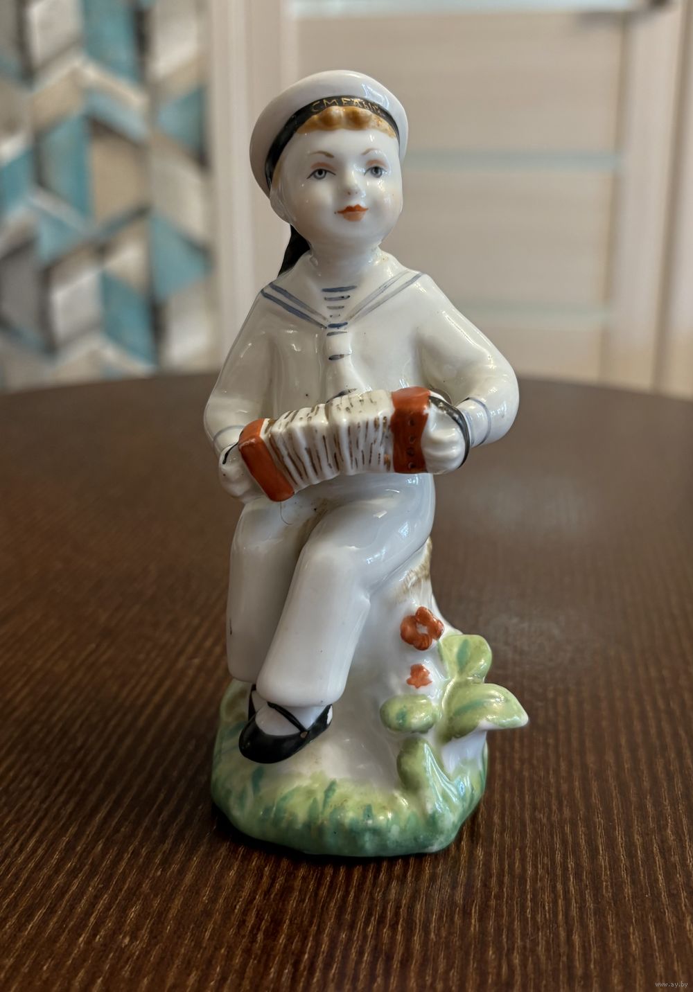 Статуэтка Фарфоровая Матрос с гармошкой . ЛФЗ . Высота 13 см .