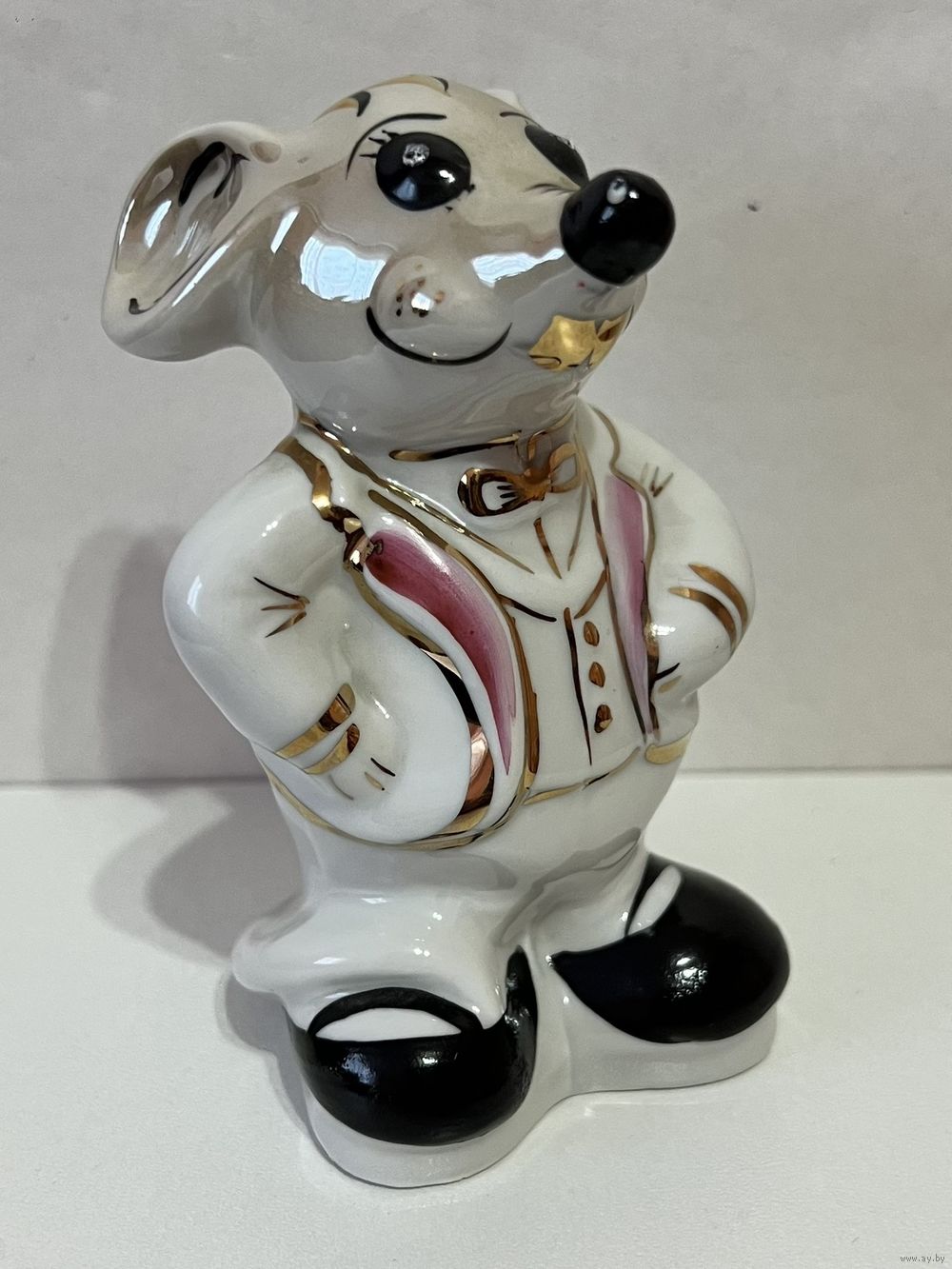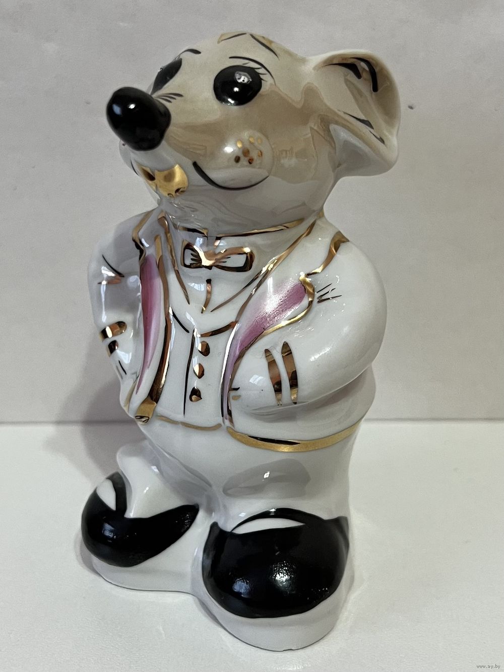Фарфоровая статуэтка "Мышь", высота 11 см., производство Добрушский Фарфоровый Завод (ДФЗ). Продавец не является экспертом, после выигрышной ставки вы получите предмет, изображенный на фотографии. Делая ставку вы принимаете условия продажи лота, установленные продавцом. Пересылку оплачивает покупатель. Выход на связь в течение 3 дней. Оплата лотов в течение 5 дней. Отправка лотов в течение 5 дней после оплаты и предварительной договорённости.