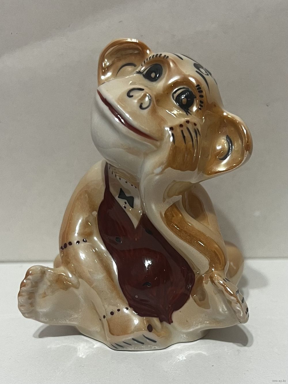 Фарфоровая статуэтка "Обезьяна" высота 9,5 см, производство Добрушский Фарфоровый Завод (ДФЗ). Продавец не является экспертом, состояние лотов всегда оценивайте самостоятельно, по представленным фотографиям, после выигрышной ставки вы получите предмет, изображенный на фотографии. Делая ставку вы принимаете условия продажи лота, установленные продавцом. Пересылку оплачивает покупатель. Выход на связь в течение 3 дней. Оплата лотов в течение 5 дней. Отправка лотов в течение 5 дней после оплаты и предварительной договорённости.