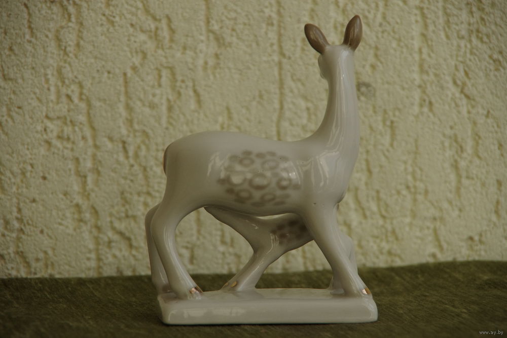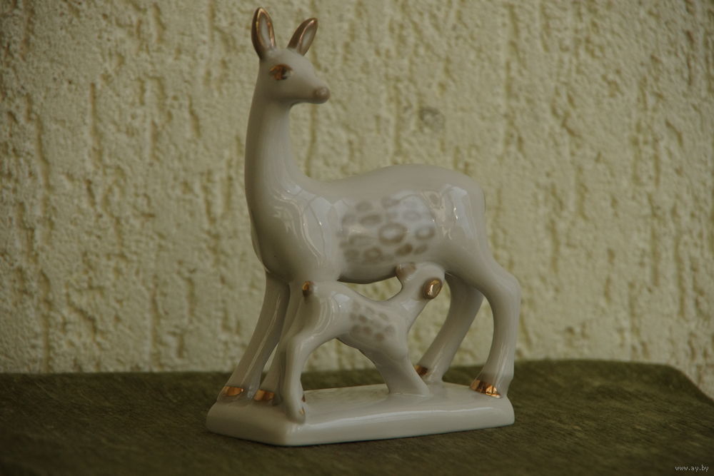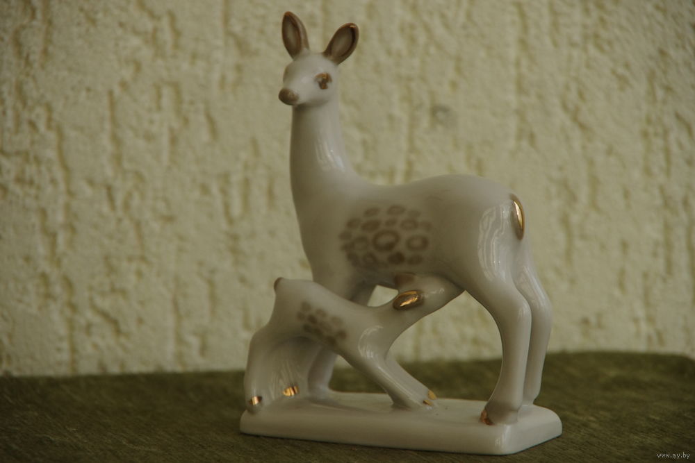 Статуэтка фарфоровая " Олениха с олененком " ЗХК Полонне ( целая )