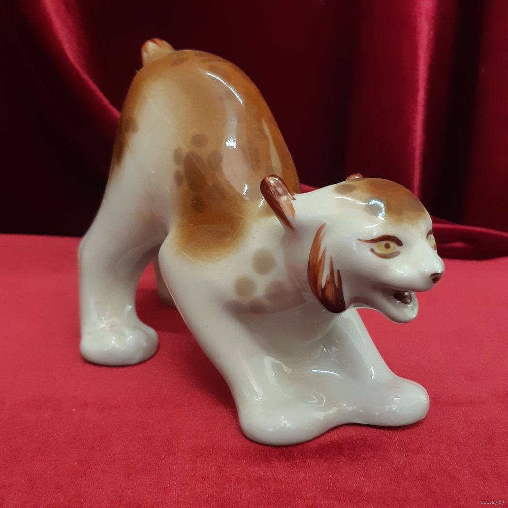 Статуэтка фарфоровая Рысь, ЗХК Полонное. СССР